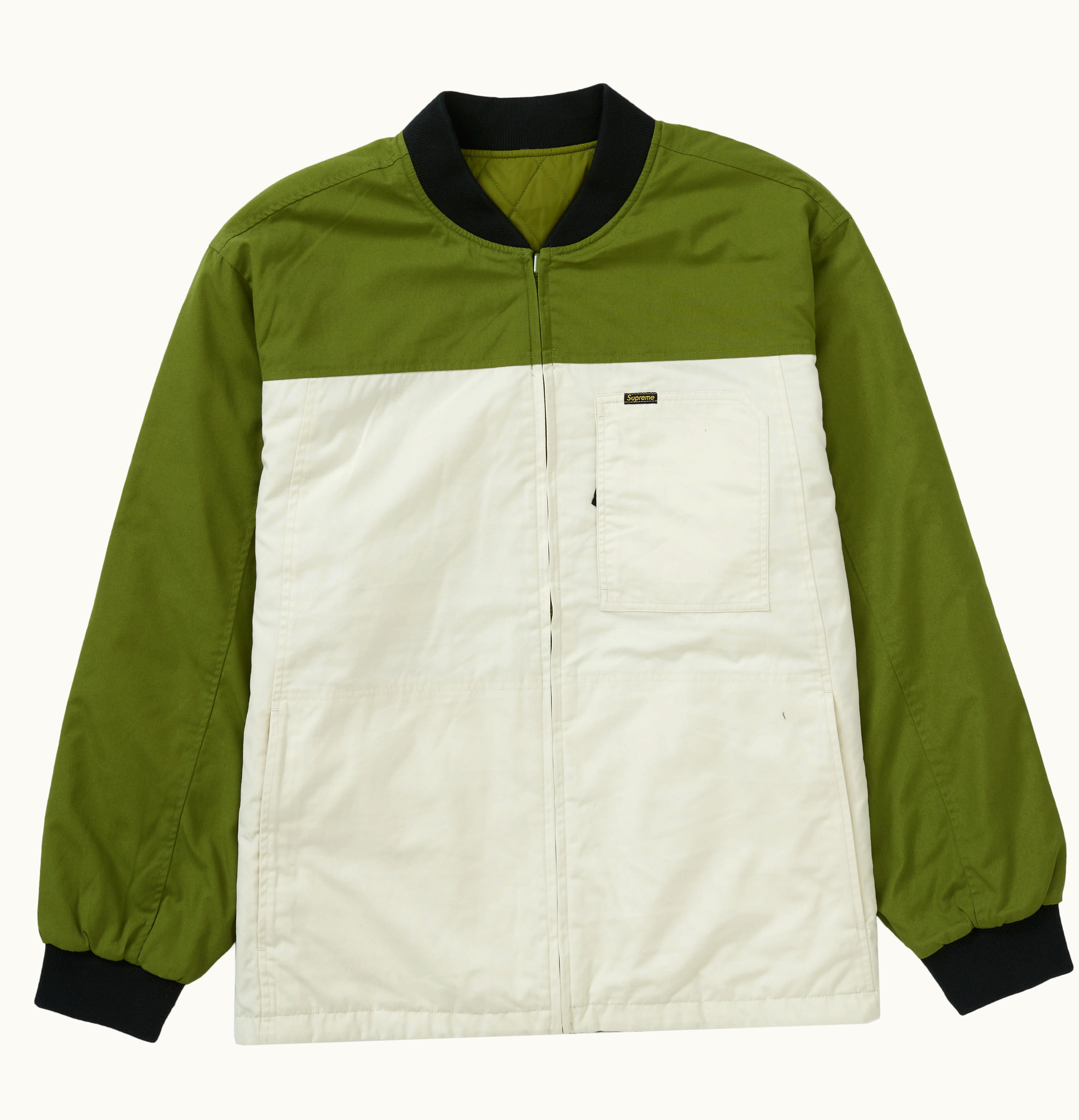 The Supreme Reversible Tech Work jacket is a high-quality, versatile piece of outerwear that is designed for both style and functionality. This jacket features a reversible design, allowing you to wear it in two different ways, and is made from a durable, water-resistant fabric that provides excellent protection from the elements. The Tech Work jacket also features a number of additional design elements that make it a great choice for outdoor work or leisure activities. These include multiple pockets for storing your phone, keys, and other essentials, a drawstring hood for added protection, and a comfortable fit that allows for full range of motion. Whether you're exploring the city or working outside, the Supreme Reversible Tech Work jacket is a versatile and stylish choice that will keep you warm, dry, and comfortable all day long.