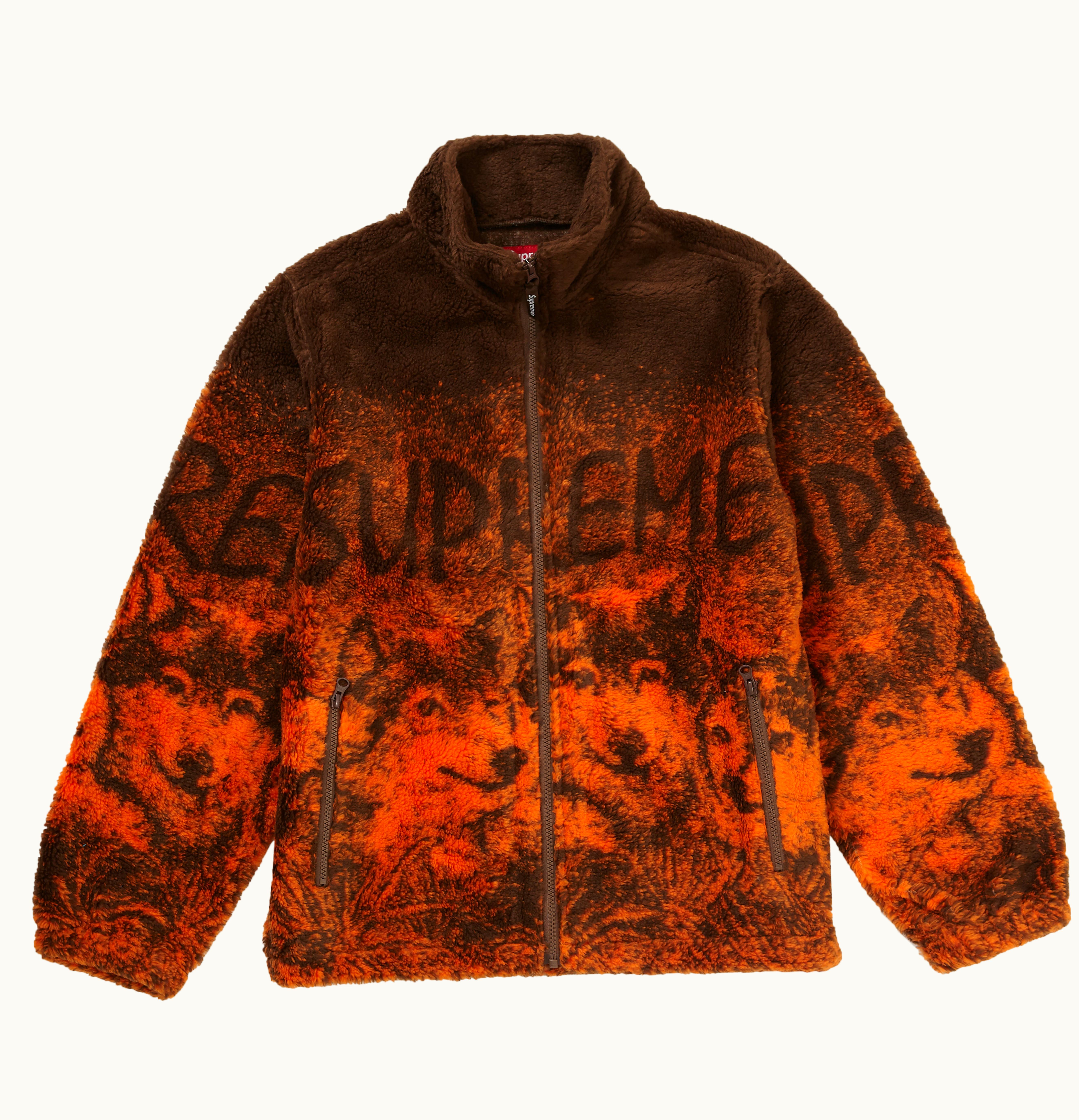 In GLINT, fleeces became incredibly popular both on and off the catwalks in 2018. For their SS19 collection, Supreme enthusiastically embraced this trend with their Wolf Fleece during week 3 of the season. This distinctive fleece boasts a rugged pile texture, along with a striking design featuring several wolves on the hem and the ominous Supreme lettering emblazoned across the chest. The fleece was released in three colors - black, blue, and orange - on March 14th, 2019, with a retail price of $198 USD. If you want to enjoy ultimate comfort and style year-round, make sure to place your bid on this exceptional jacket now available on GLINT.