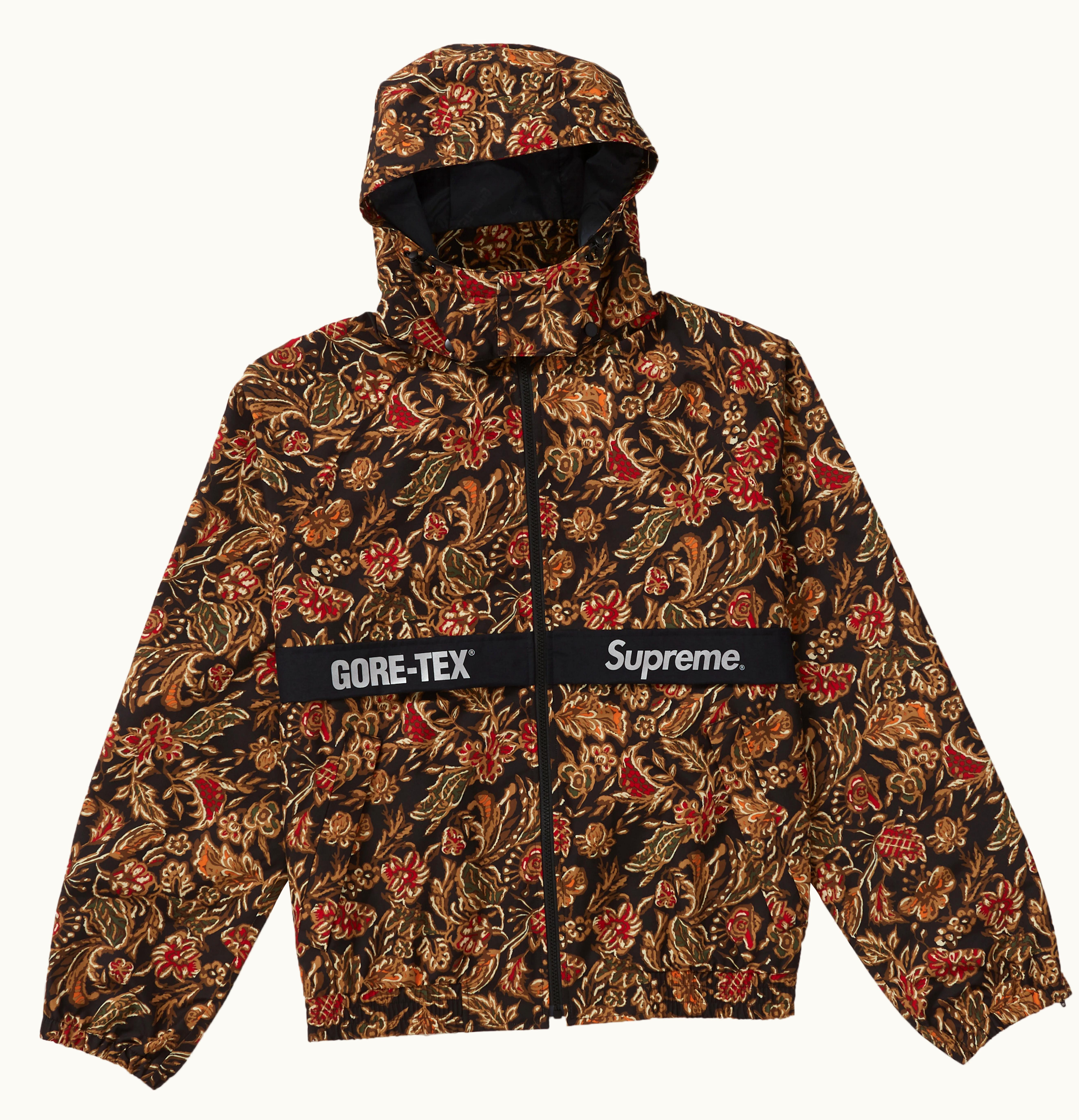 The latest version of the highly sought-after court jacket from Supreme boasts the familiar GORE-TEX technology that provides both waterproofing and breathability. Made from nylon, this jacket features taped seams, nylon lining, a detachable hood, and front hand pockets. Supreme's partnership with GORE-TEX is not new, as they previously utilized their materials during the Spring/Summer 2017 North Face collaboration. Released on October 11th, 2018 at a retail cost of $348, this jacket is a must-have from Supreme's Fall/Winter 2018 collection. Secure your own now with GLINT by placing a bid.