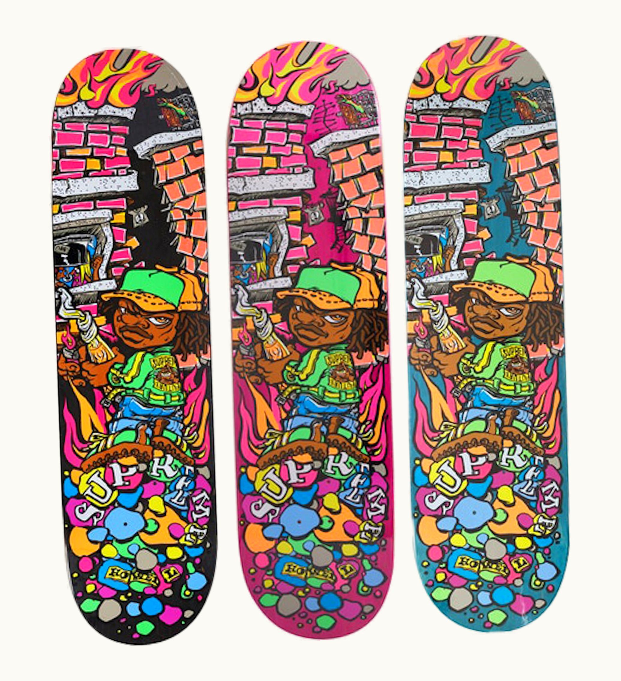 Supreme Molotov Kid Molotov Kid is a limited edition collectible figurine released by streetwear brand Supreme. The figurine stands at approximately 8 inches tall and depicts a young boy holding a molotov cocktail in each hand. The figurine is made from high-quality vinyl and features intricate detailing, including the boy's clothing and facial expression. This piece is highly sought after by collectors and fans of Supreme's unique style. It comes packaged in a Supreme branded box with a small sticker included.