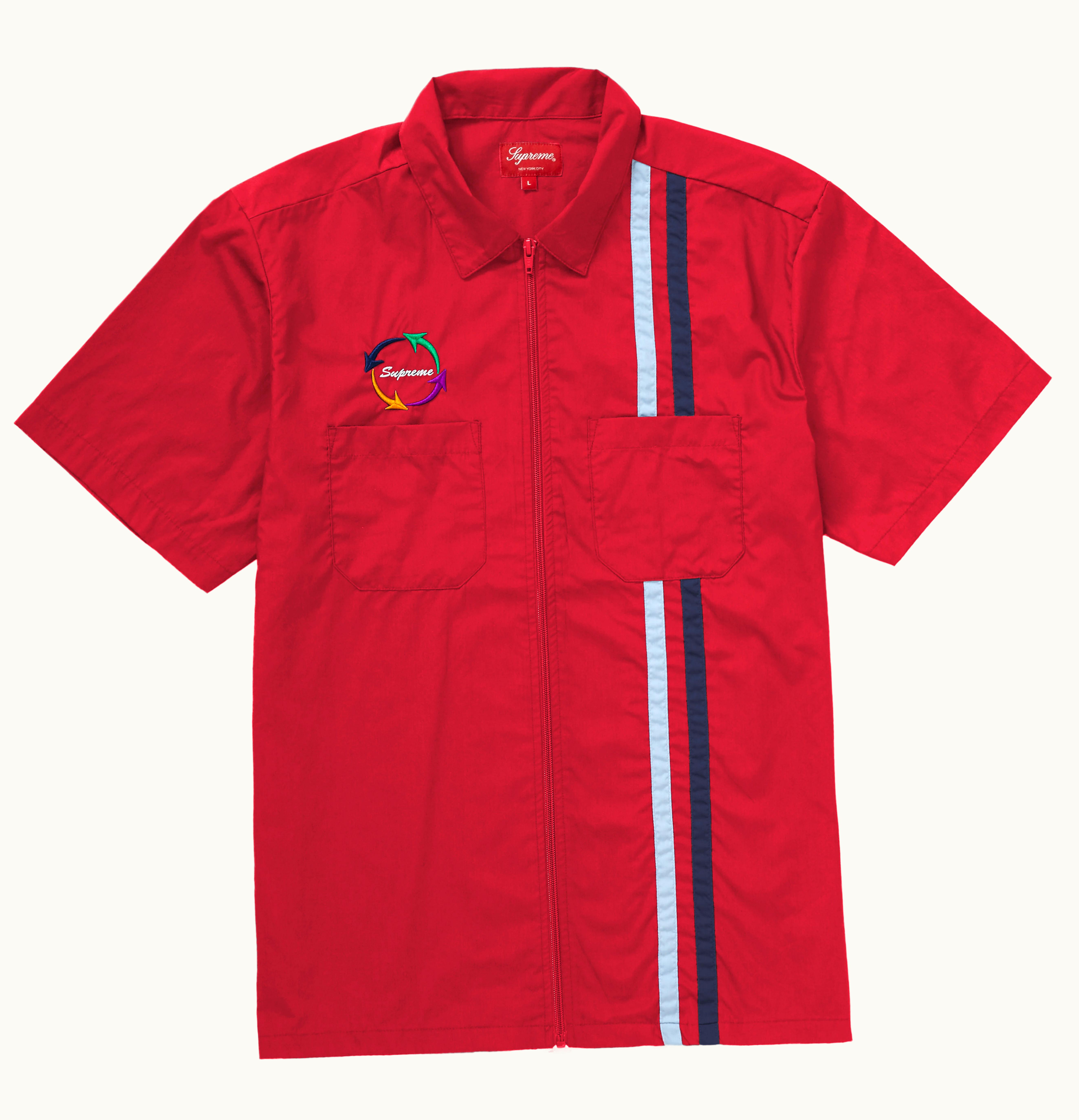 Supreme Zip Up S S Work Shirt Red | GLINT