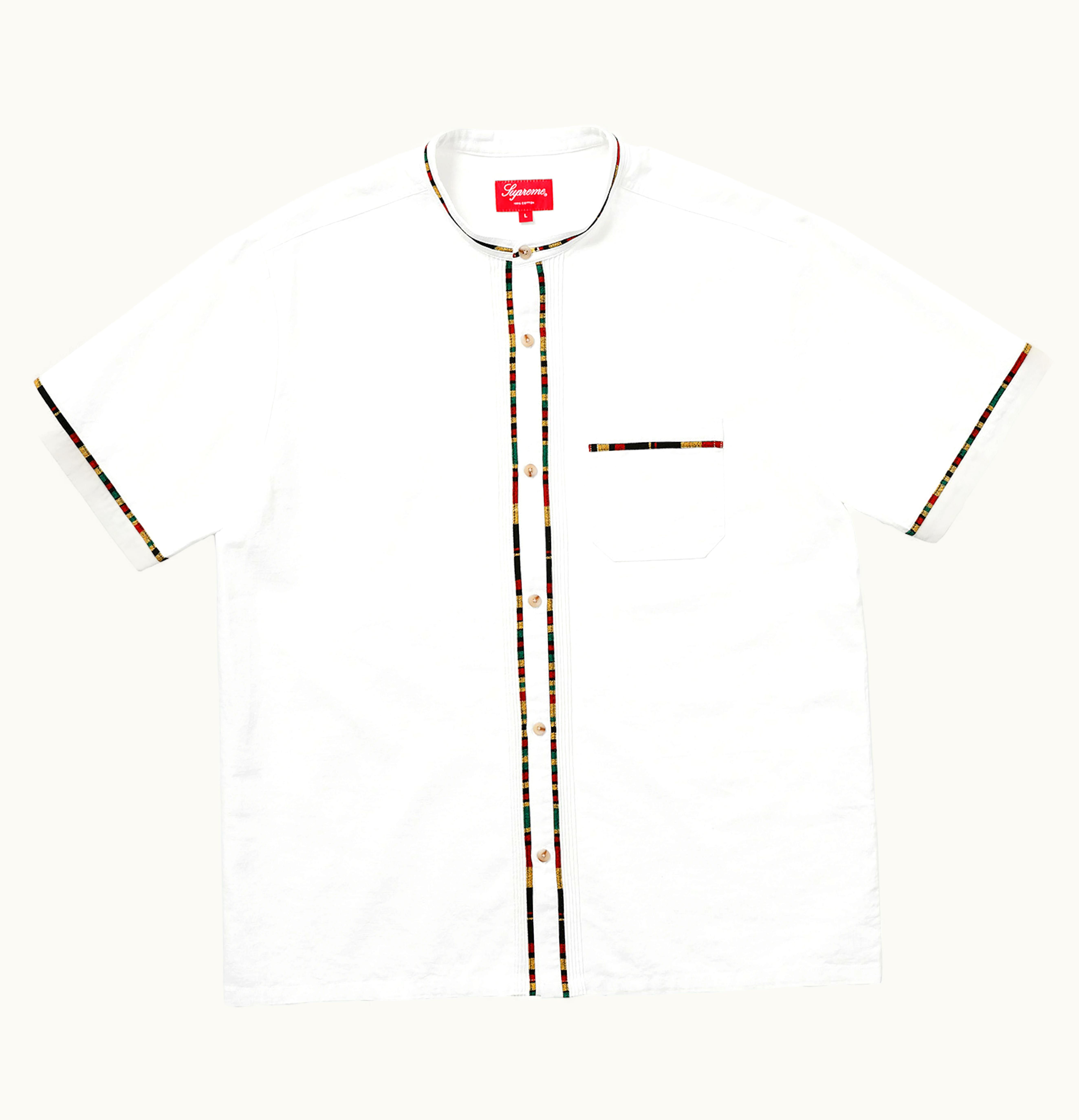 The Supreme S/S Band Collar is a stylish and comfortable band collar shirt for men. Made from high-quality cotton material, this shirt features short sleeves and a band collar for a sleek and minimalistic look. The shirt is available in a range of colors to suit your personal style, and the iconic Supreme logo is embroidered on the chest. This shirt is perfect for both casual and formal occasions, and pairs well with jeans or dress pants. Its premium quality materials make it durable and long-lasting, ensuring that it will be a staple in your wardrobe for years to come.