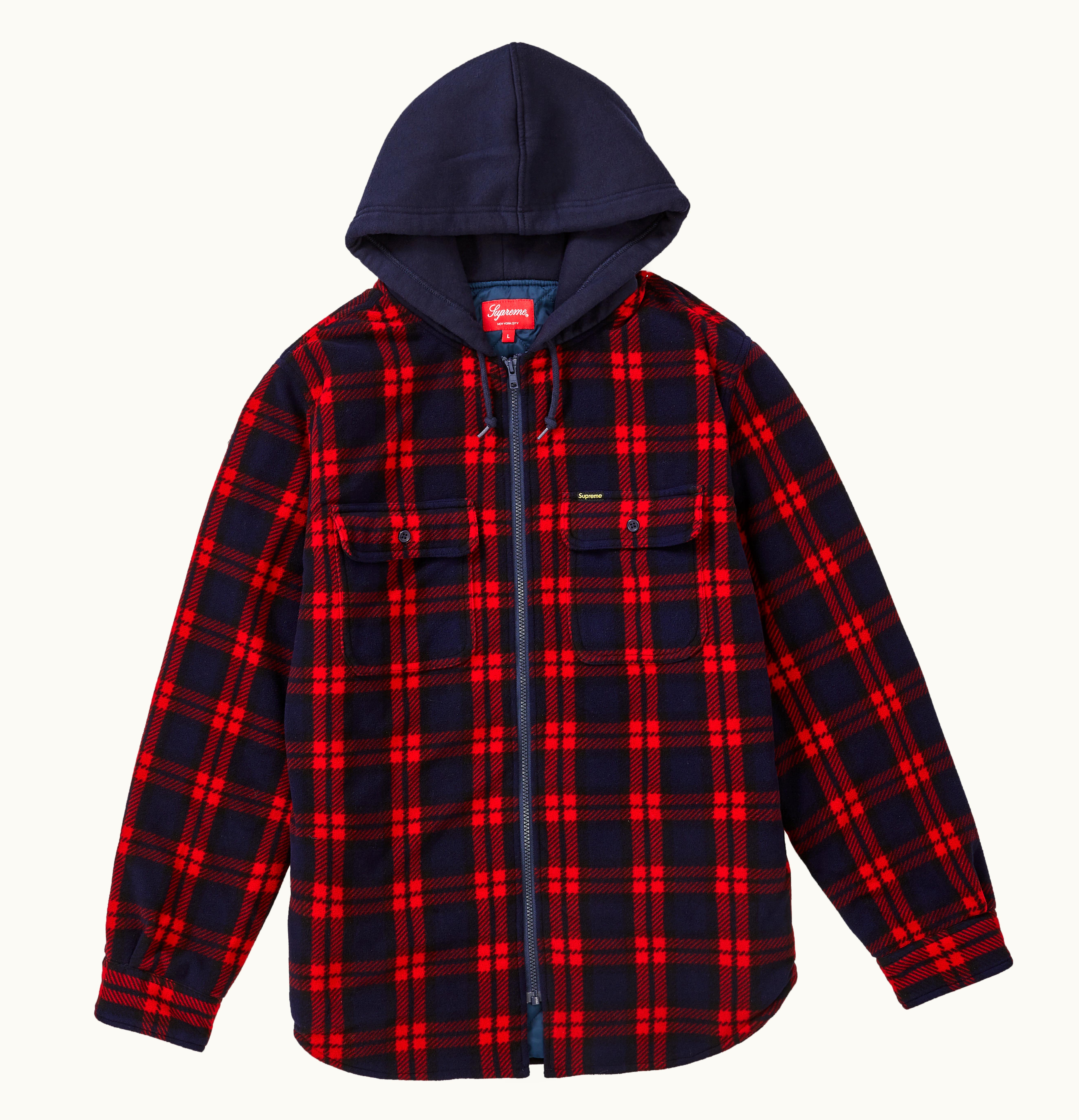 The Supreme Hooded Plaid Work Hooded Plaid Work is a fashionable and durable hoodie perfect for outdoor work or casual wear. Made of heavyweight cotton flannel material, it features a stylish plaid pattern with a contrasting Supreme logo in the center of the chest. The hoodie also has a removable hood, adjustable cuffs, and a front pocket for added convenience. Its comfortable fit and high-quality construction make it a long-lasting addition to any wardrobe.