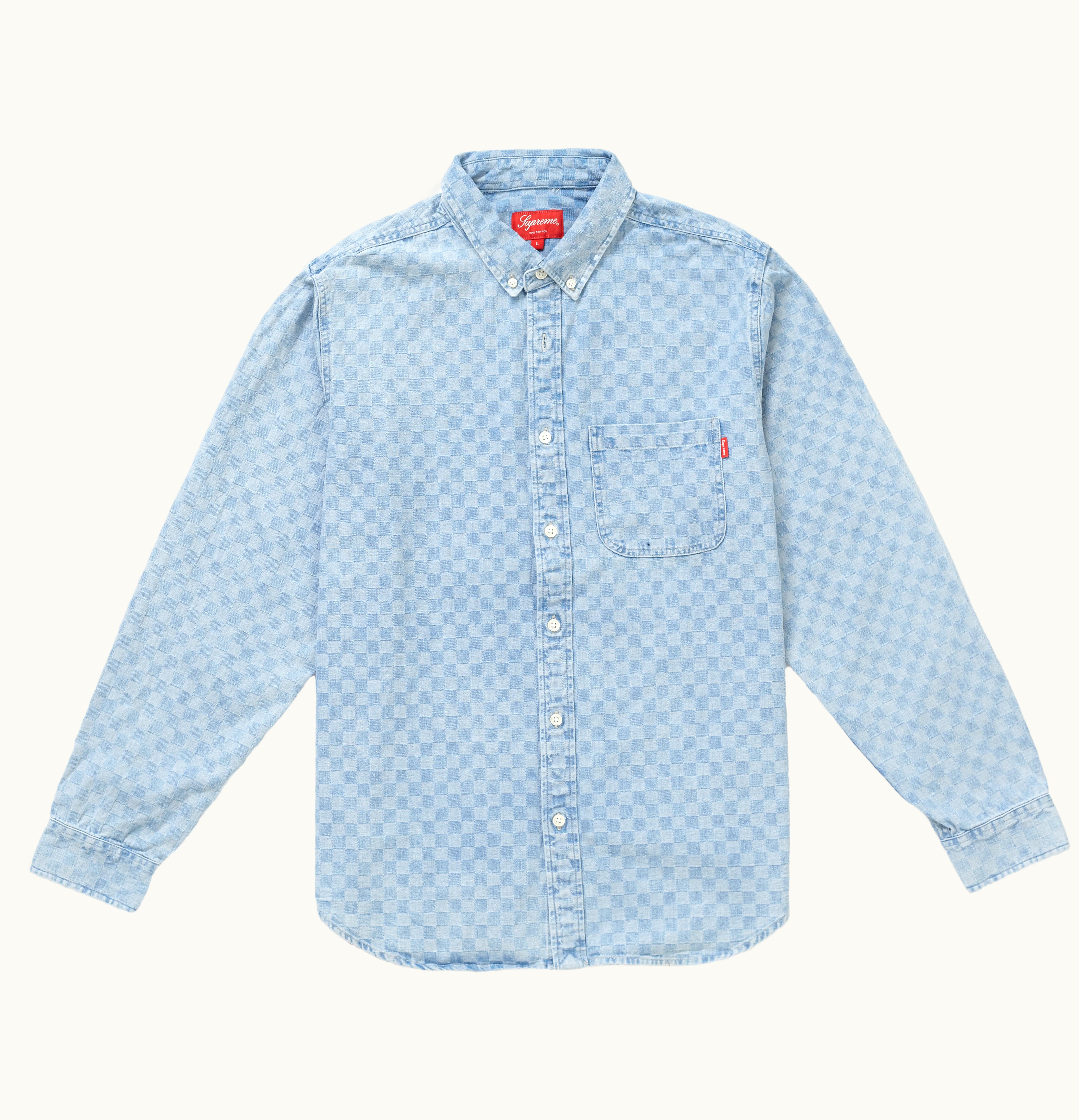 Supreme Checkered Denim Shirt Blue | GLINT
