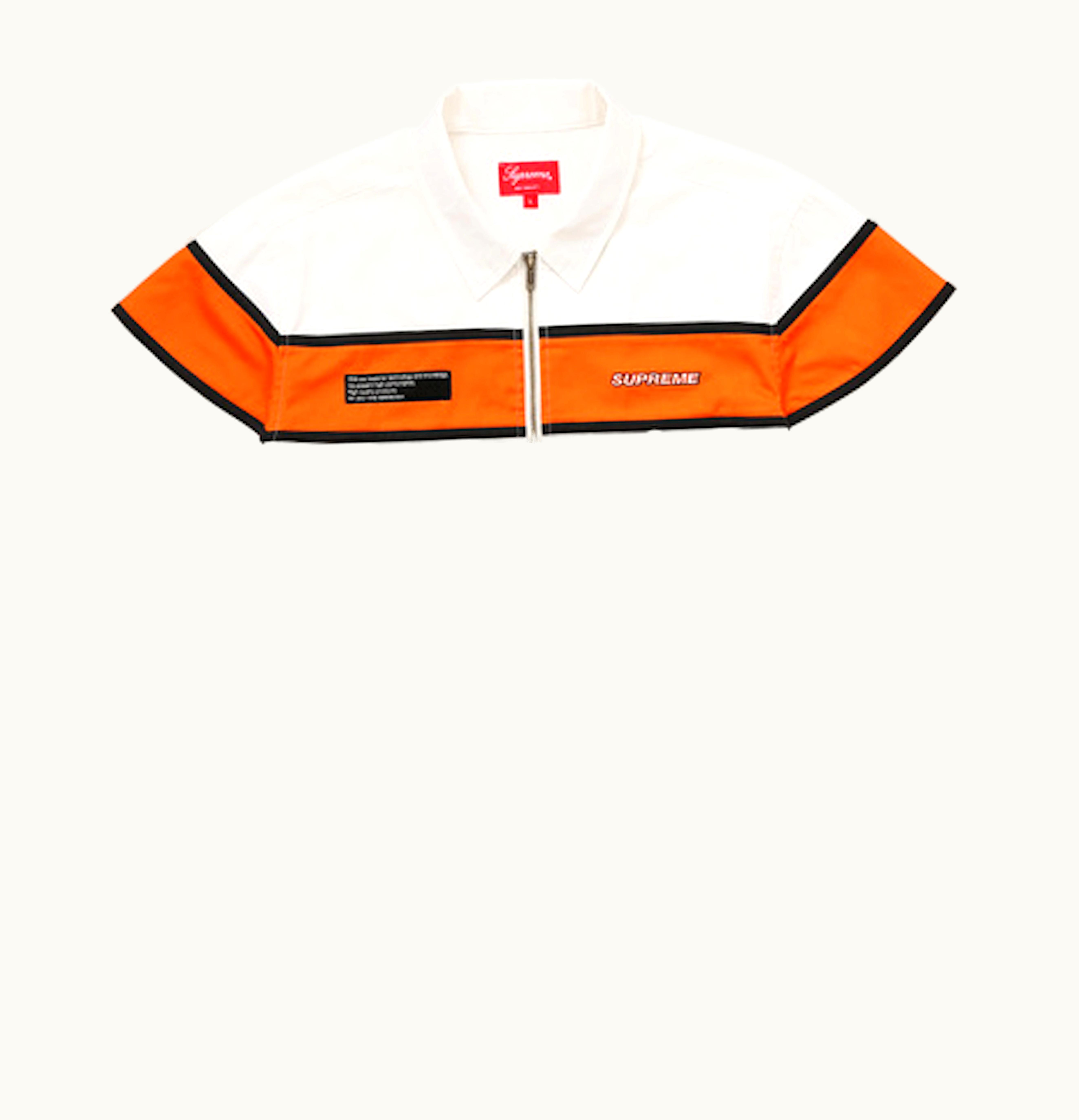 The Supreme SS Zip Up Work Jacket is a stylish and practical outerwear option for those looking to stay warm and comfortable during the cooler months. Made from a high-quality cotton blend fabric, this jacket features a full-length front zipper and two spacious pockets. The jacket has a simple, yet classic design that lends itself well to a variety of different outfits. The Supreme logo is discreetly embroidered on the left chest, adding a touch of luxury to this otherwise understated jacket. Perfect for layering over a t-shirt or hoodie, the Supreme SS Zip Up Work Jacket is versatile enough to be worn casually or dressed up for more formal occasions. With its comfortable fit and durable construction, this jacket is a great investment piece that will last for many seasons to come.