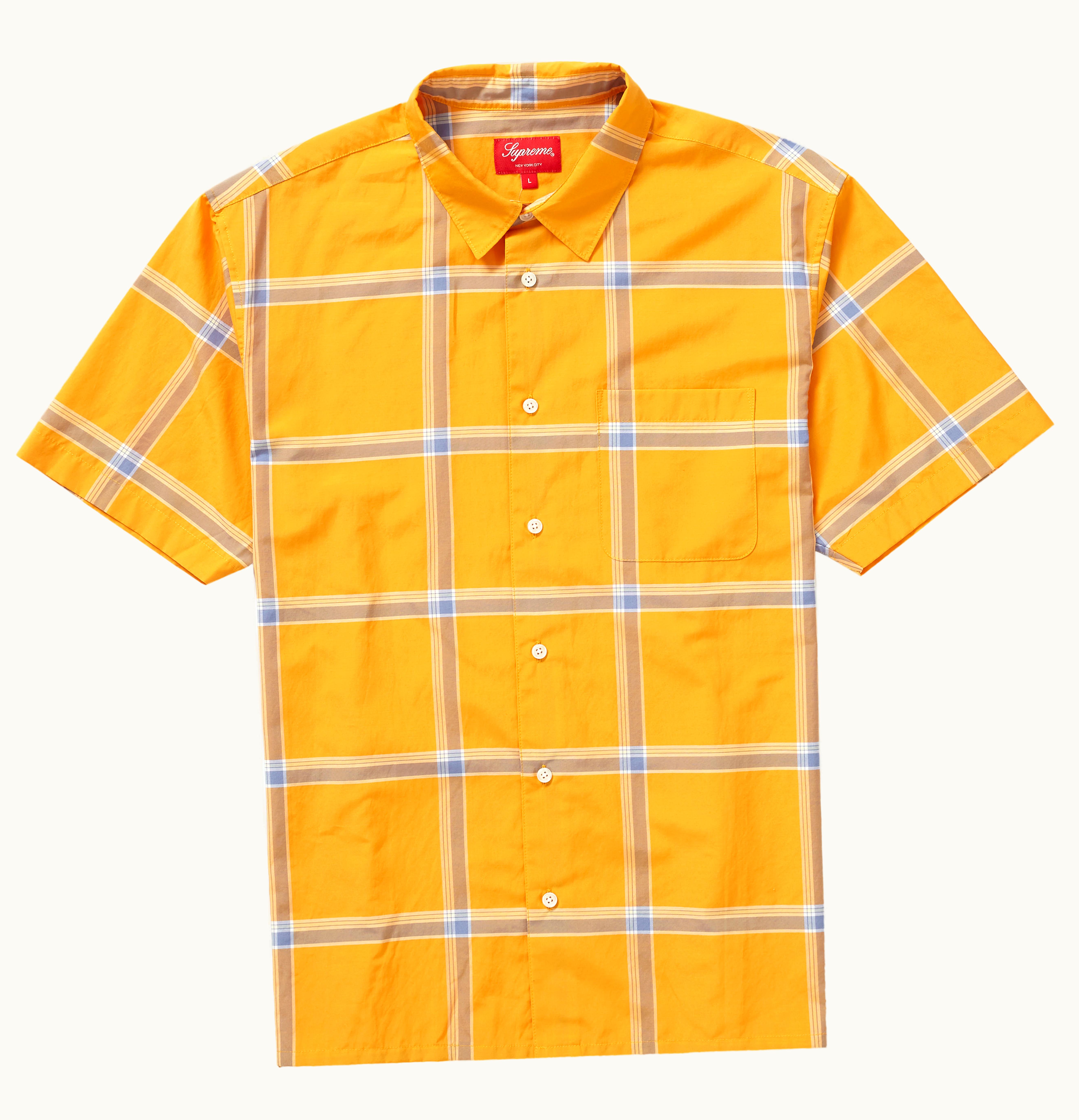 The Supreme Lightweight Plaid S/S is a short-sleeved shirt made from lightweight plaid fabric. The shirt features a button-down collar, a front button closure, and a left chest pocket with a Supreme logo tag. The plaid pattern consists of various colors, such as red, blue, and green, giving it a classic, yet stylish look. The shirt is made from high-quality materials, making it comfortable and durable for everyday wear, perfect for summertime. The Supreme Lightweight Plaid S/S is a versatile piece that can be dressed up or down, making it a great addition to anyone's wardrobe.