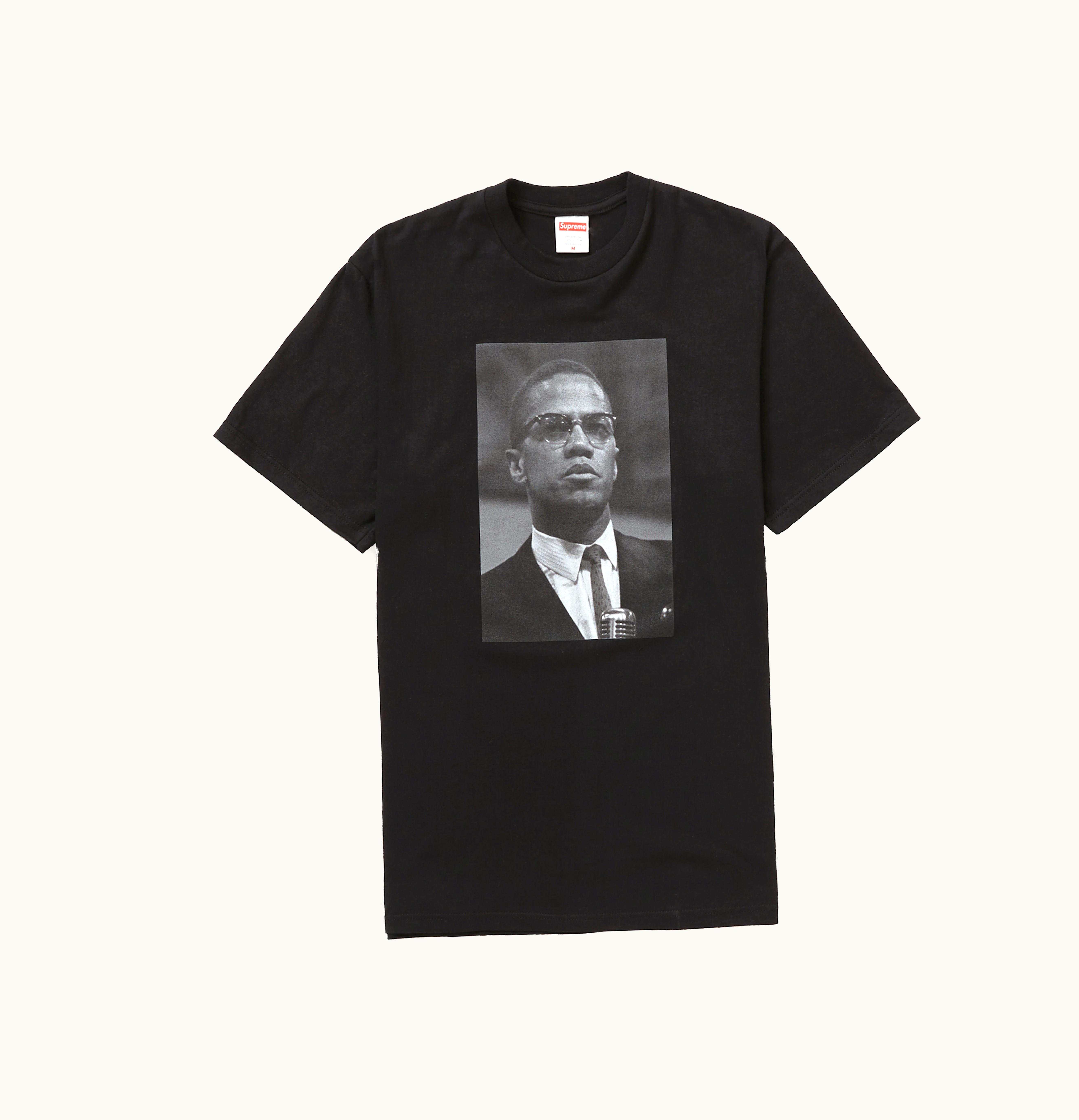 The Black Supreme Roy DeCarava Malcolm X T-Shirt is crafted out of cotton and features a classic, minimalistic design. Adorning the front of the shirt is a black and white photograph of renowned activist, Malcolm X. On the upper back of the tee, the Roy DeCavara logo is placed atop the Supreme logo, with both being executed in contrasting colors of white and red, respectively. <br> <br> This highly sought-after item was launched on May 19th, 2022, and was retailing for $48. It is exclusively available on GLINT, the leading online marketplace for premium streetwear.