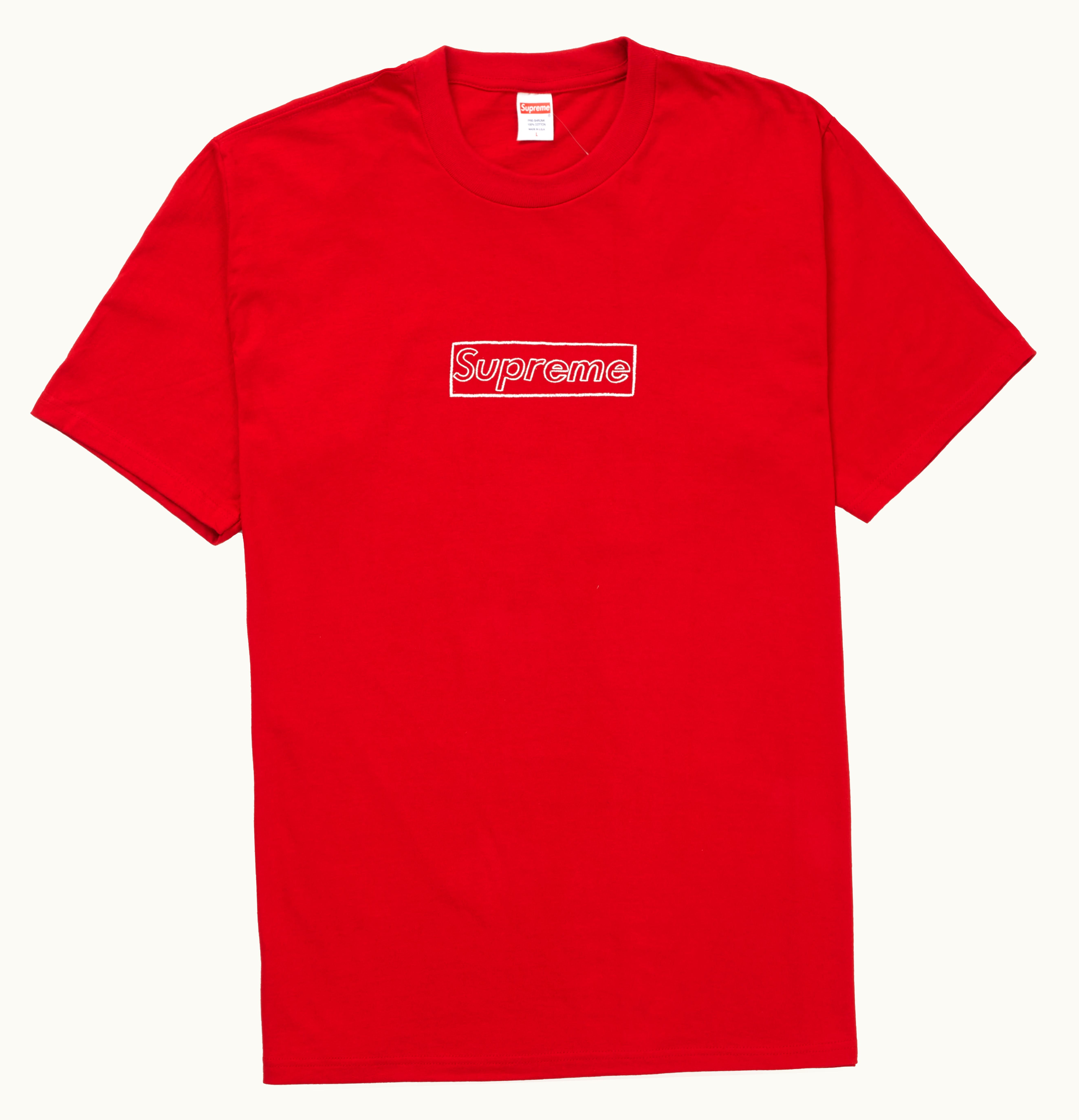 As a part of its Spring/Summer 2021 Summer Tees delivery, Supreme launched the KAWS Chalk Logo T-shirt in June 2021, which is available in seven different colors. This T-shirt displays the same design as the previously released hoodie and hat from Supreme, featuring the striking KAWS Chalk Logo. The red-colored version showcases a collaborative white KAWS chalk-drawn Box Logo on its front. On June 24th, 2021, Supreme dropped its KAWS Chalk Logo T-shirt in Red at a retail price of $38, which is now available on GLINT.