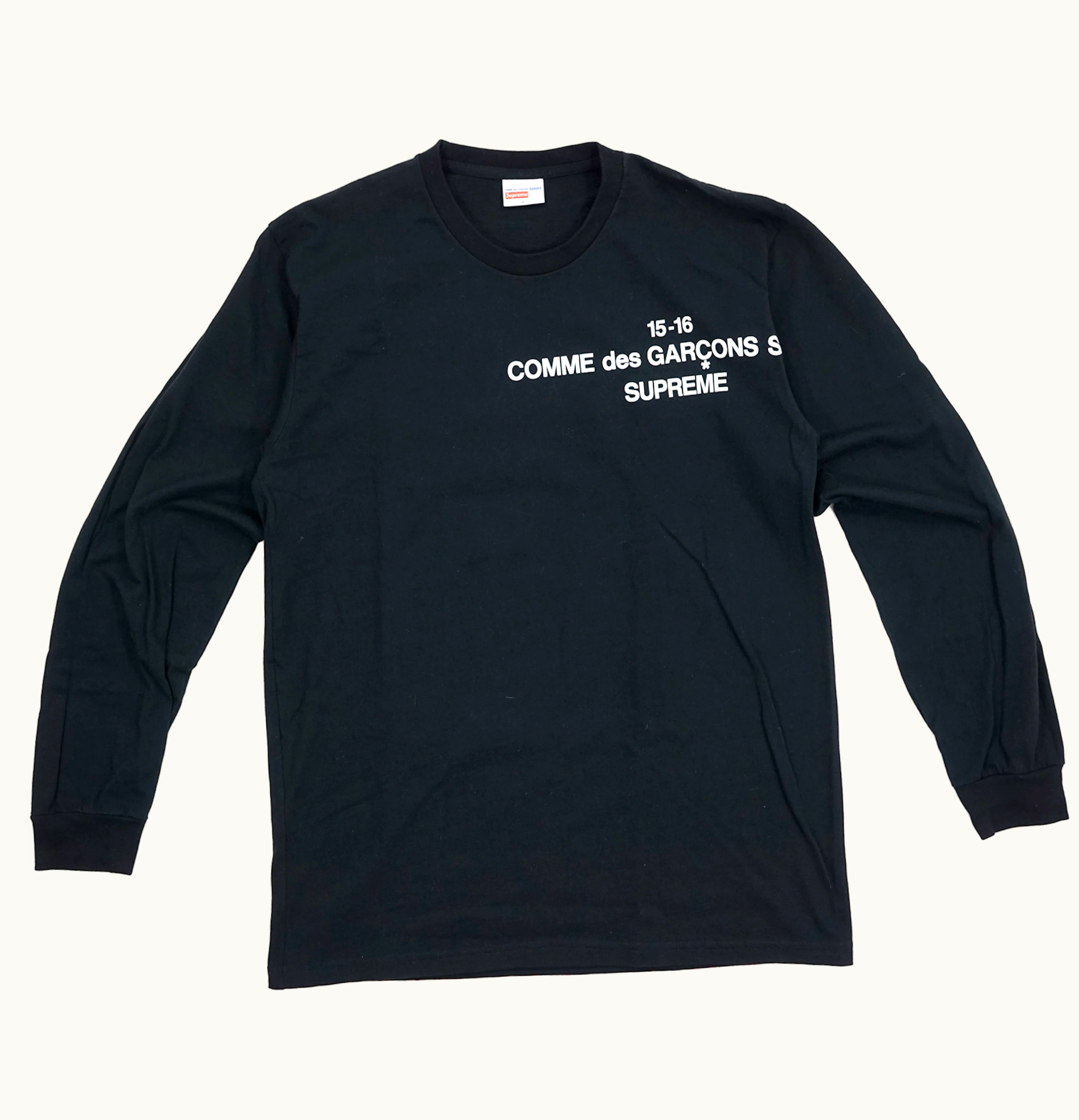 The Supreme Comme Des Garcons Long Sleeve is a premium quality and stylish long sleeve shirt designed by the collaboration between two top-tier brands, Supreme and Comme Des Garcons. This shirt features simple yet elegant black and white stripes with a white Supreme box logo placed on the chest. The shirt is made from high-quality 100% cotton fabric that is soft-to-touch, breathable, and smooth on the skin. The shirt has a classic crewneck design and long sleeves that provide ample coverage and comfort. This long sleeve shirt is perfect for casual or formal occasions and can be paired with jeans, shorts, or pants for a trendy and stylish look. Get your hands on the Supreme Comme Des Garcons Long Sleeve today and elevate your streetwear game to the next level.