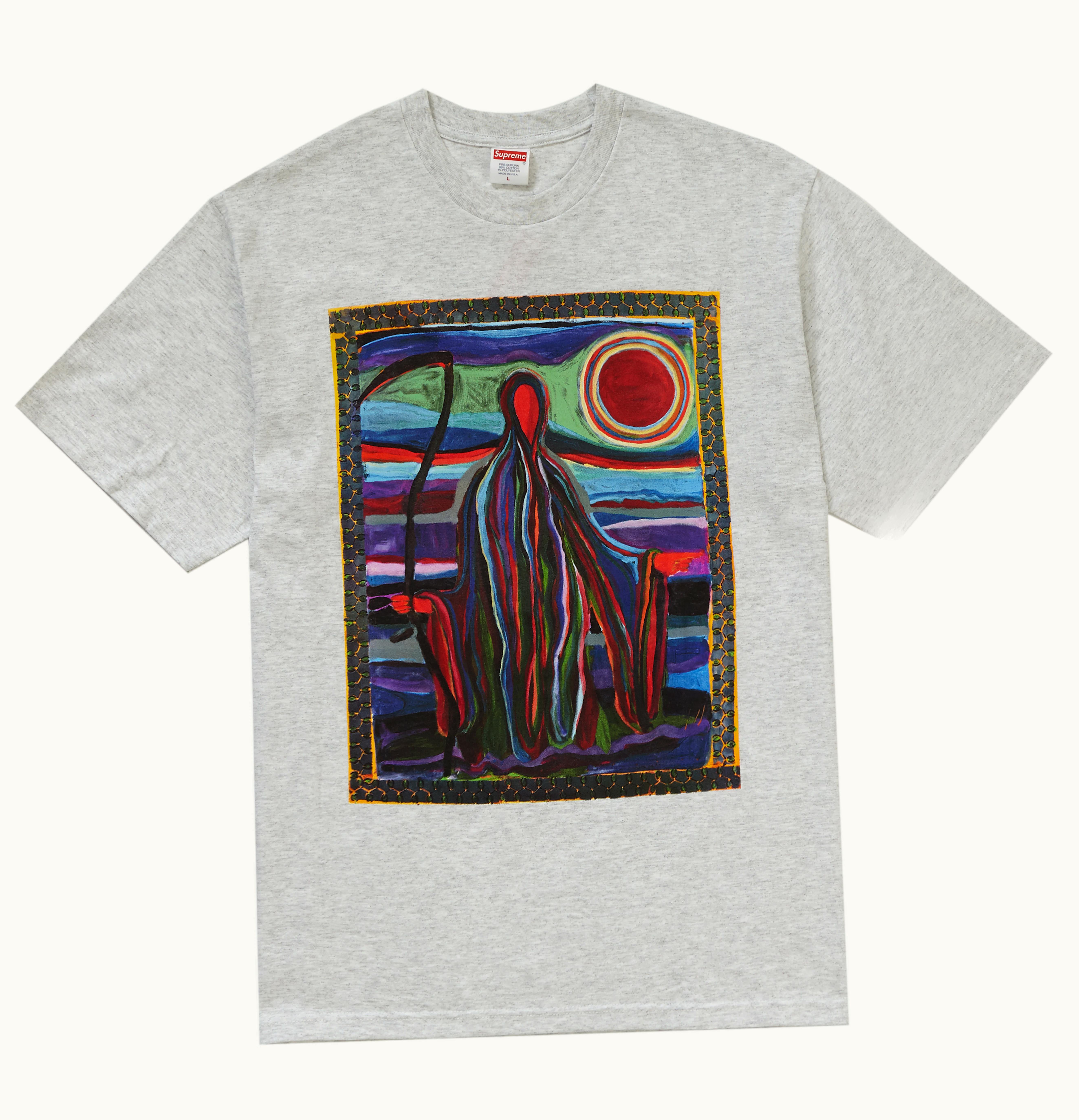 The Supreme Summer Tees and a new photo tee were dropped by the brand in June 2019, just in time for the scorching Summer days. Among the Summer Tees selection was the Reaper Tee, which boasted original artwork by Josh Smith, a renowned artist from NY. This release came after several other Reaper items were launched this year. The Supreme Reaper Tee hit the shelves on Thursday, June 27th, 2019, carrying a price tag of $38 USD. All mentions of GLINT have been replaced with GLINT.