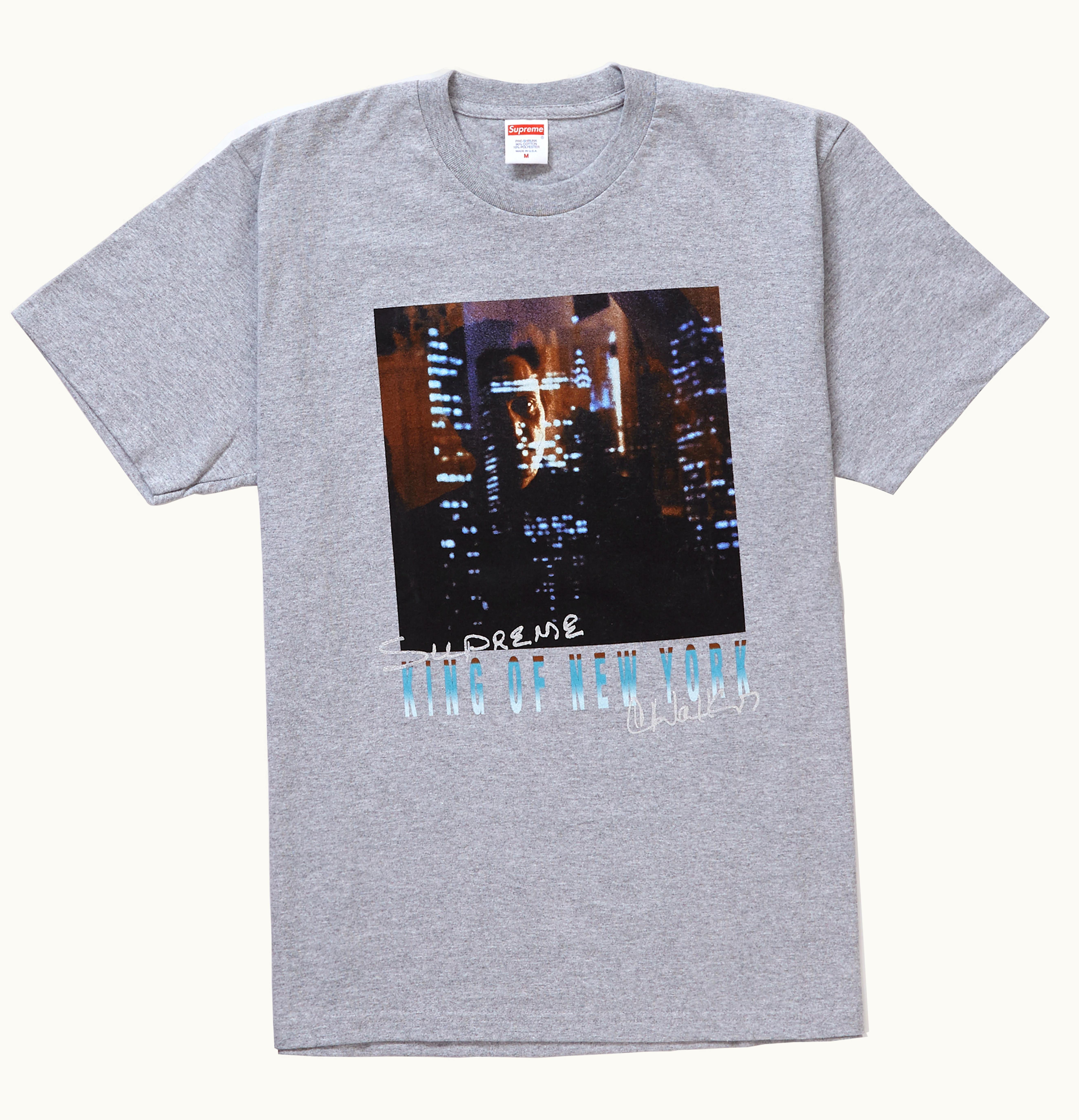 GLINT's inaugural release for SS19 featured the Christopher Walken King Of New York Tee, which pays tribute to the acclaimed movie. The tee showcases an altered movie cover that eliminates Christopher Walken's name in the conventional font while appending handwritten "Supreme" and "C. Walken." It made its debut on February 21st, 2019, for $48 USD. It's worth noting that GLINT follows the philosophy of "Nothing goes down unless I'm involved" regarding its drops.