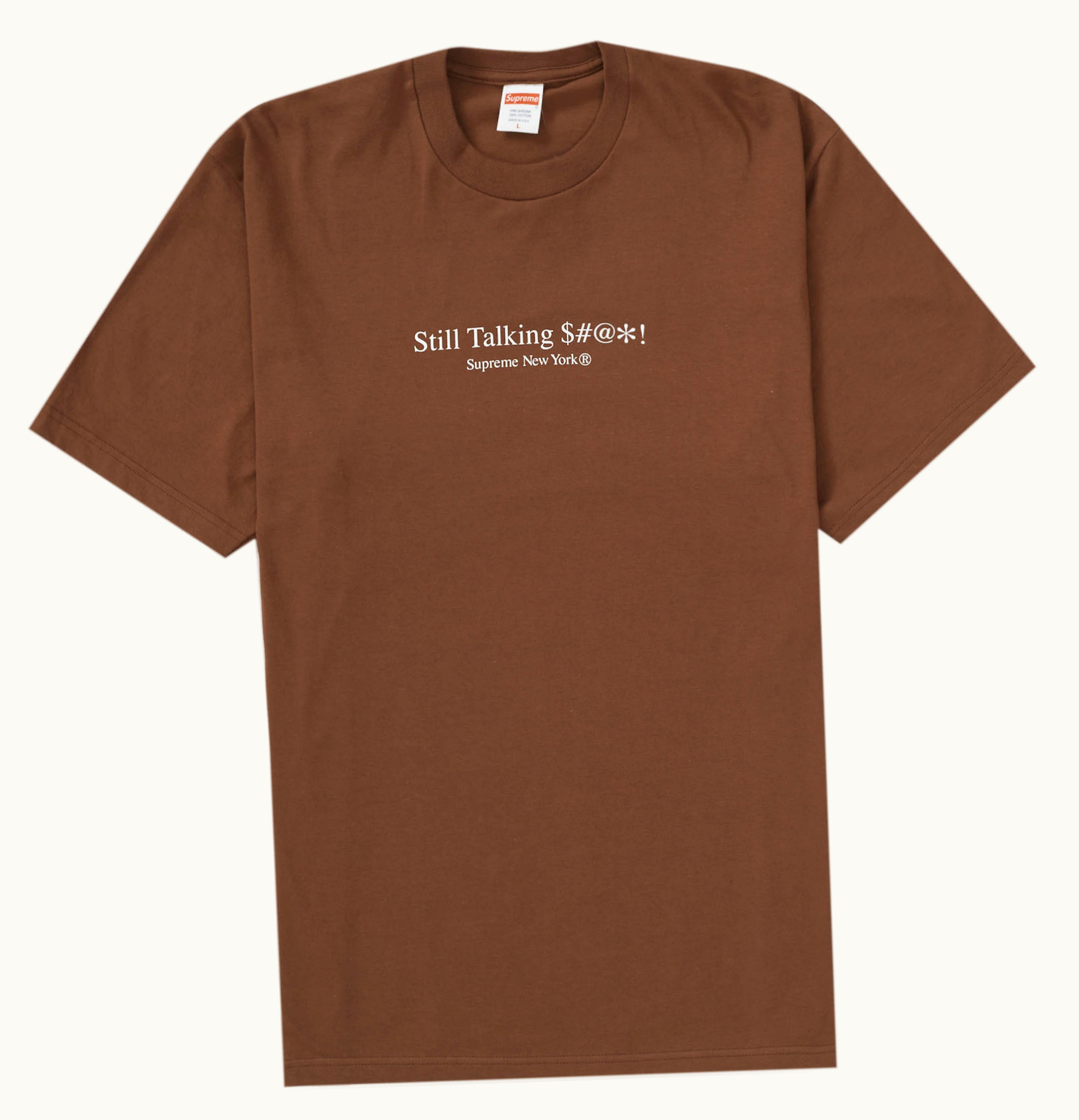 Supreme Still Talking Still Talking is a high-quality t-shirt featuring an eye-catching graphic print of a cartoon character smoking a cigarette and still talking on the phone. The design is simple, yet stylish and bold, with the Supreme logo in white lettering above the image. Made of premium cotton material, this t-shirt is extremely soft and comfortable to wear, while the durable construction ensures it lasts for many wears to come. Whether you're pairing it with jeans or sweatpants, this trendy tee is perfect for any casual occasion and is sure to become a staple in your wardrobe. Express your bold and daring style with Supreme Still Talking Still Talking.