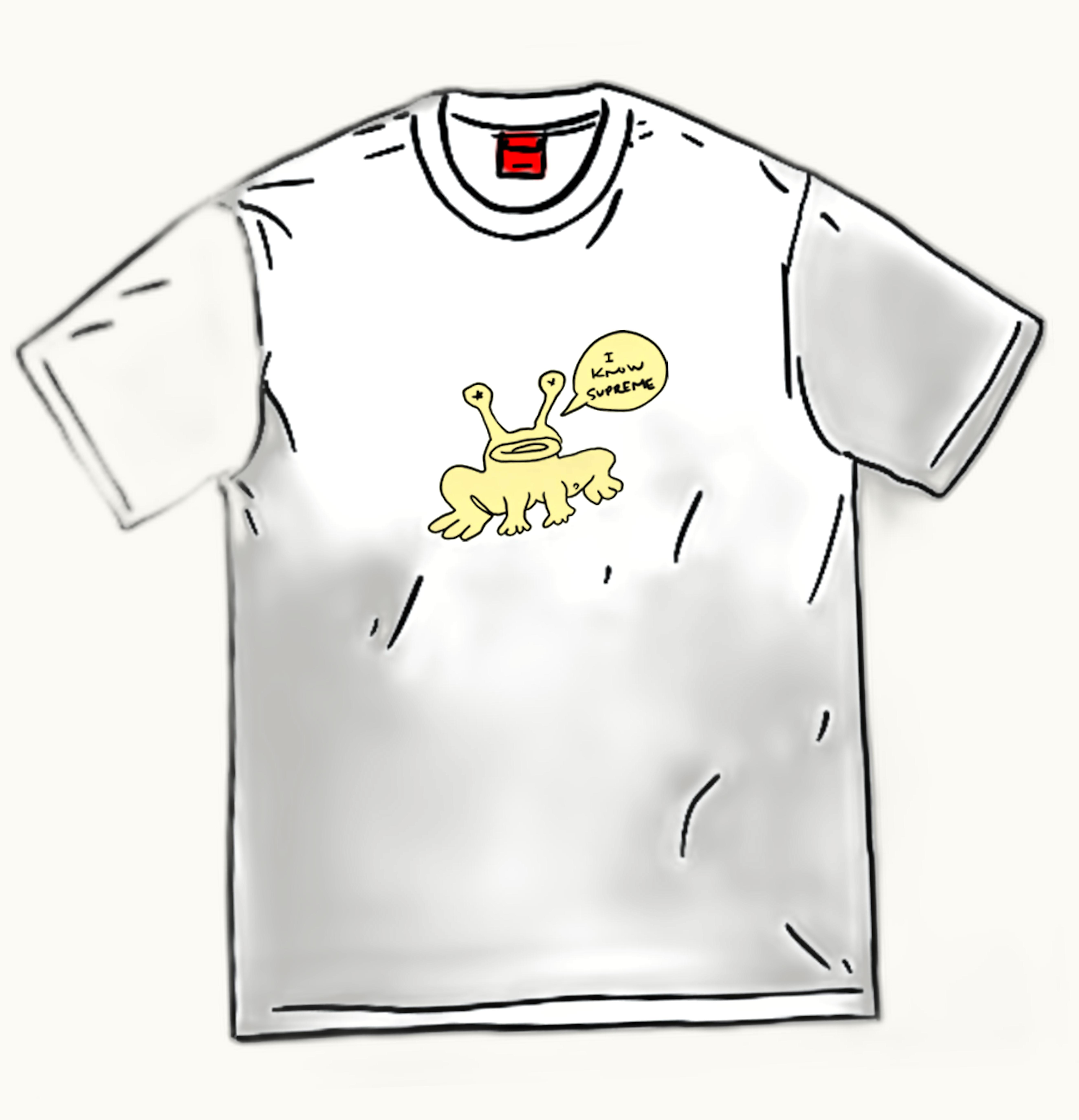 As a part of their SS20 Week 12 release, Supreme teamed up with artist Daniel Johnston for the third time. This latest collaboration sees the release of the Supreme Daniel Johnston Frog Tee, which showcases the artist's original artwork featuring a frog uttering the words "I know Supreme". The product hit stores on May 14th, 2020, with a retail price of $44 USD. GLINT is a marketplace that might carry this collaboration.