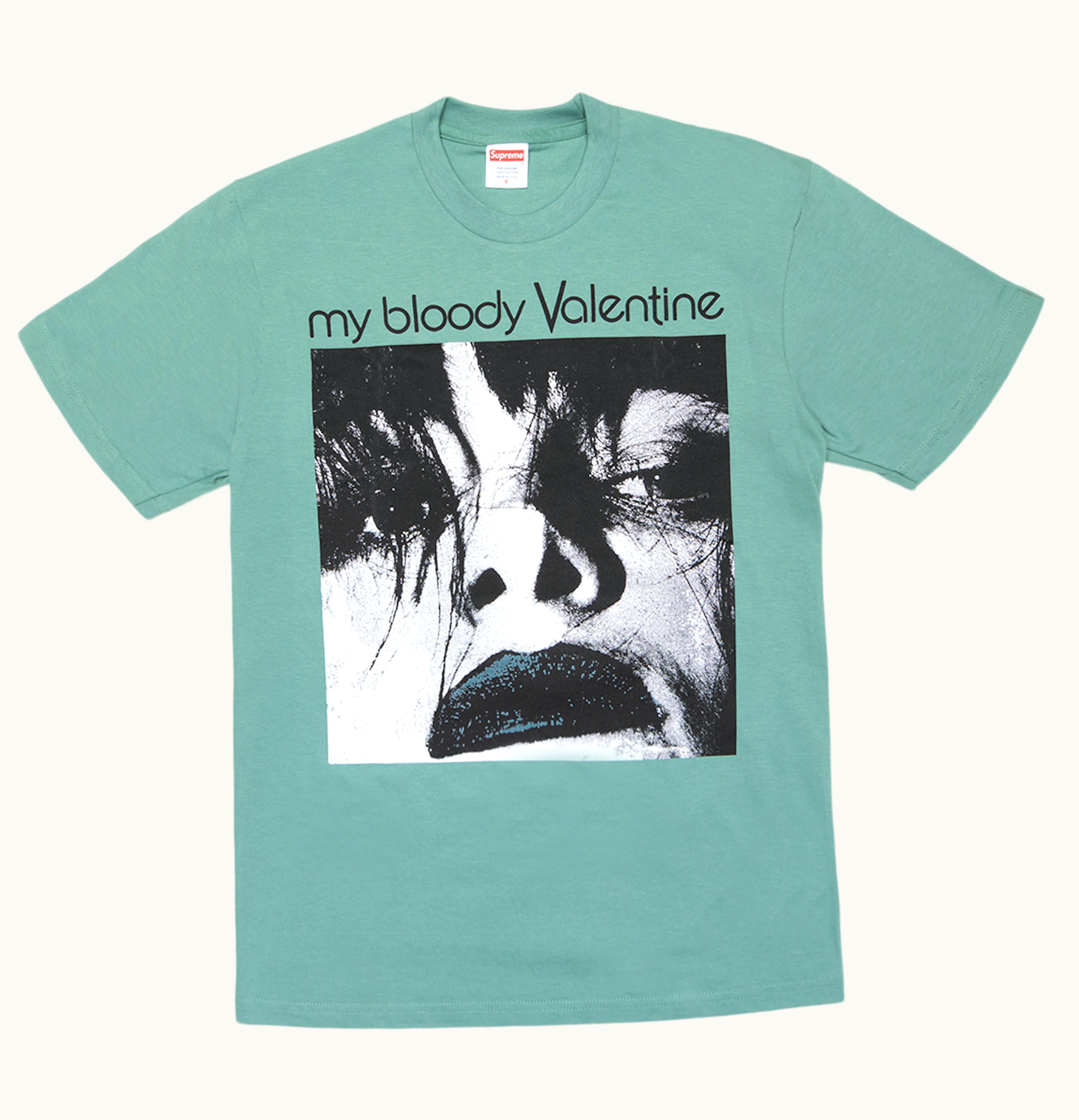 Supreme's collaboration with My Bloody Valentine brings you the iconic "Feed Me With Your Kiss" t-shirt. This classic tee features a vivid graphic of a hungry mouth with black paint strokes and the bold white text "MY BLOODY VALENTINE" below. The back of the shirt is emblazoned with the song title "Feed Me With Your Kiss" in the same white text. Made from 100% cotton and available in multiple sizes, this t-shirt is a must-have for My Bloody Valentine fans and streetwear enthusiasts alike.