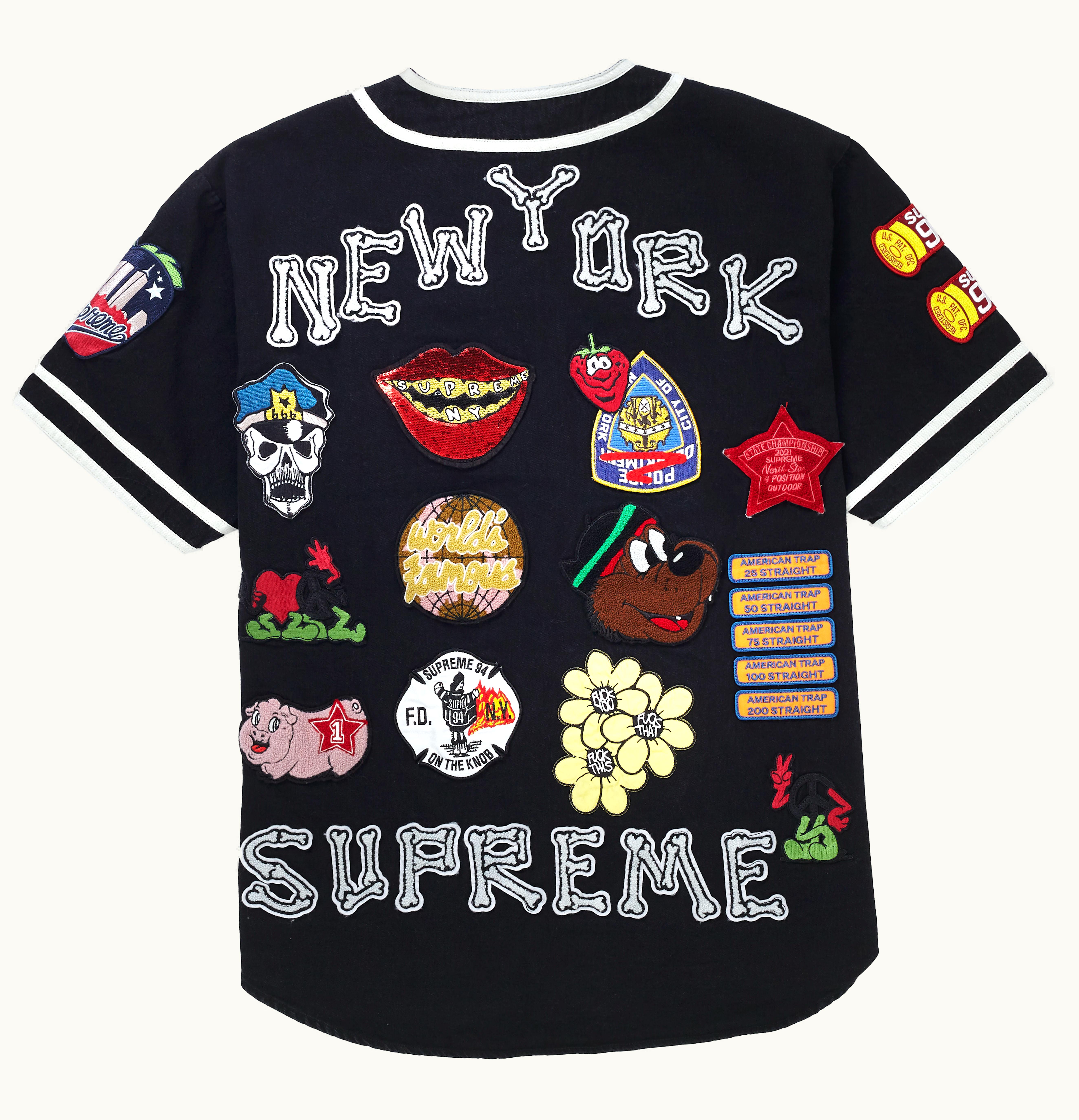 Supreme Patches Denim Baseball Jersey Black | GLINT
