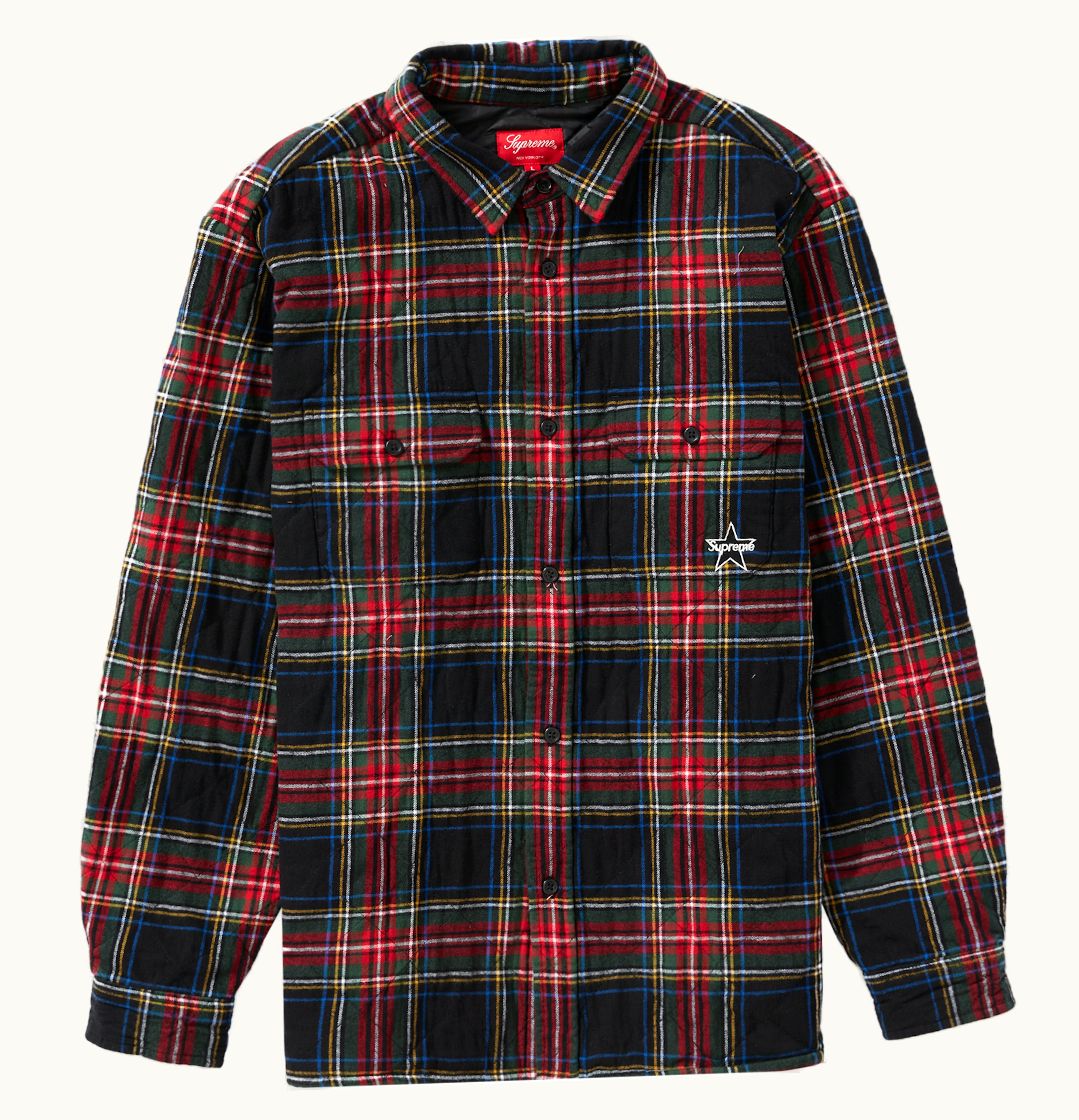 Supreme Quilted Plaid Flannel Shirt Black | GLINT