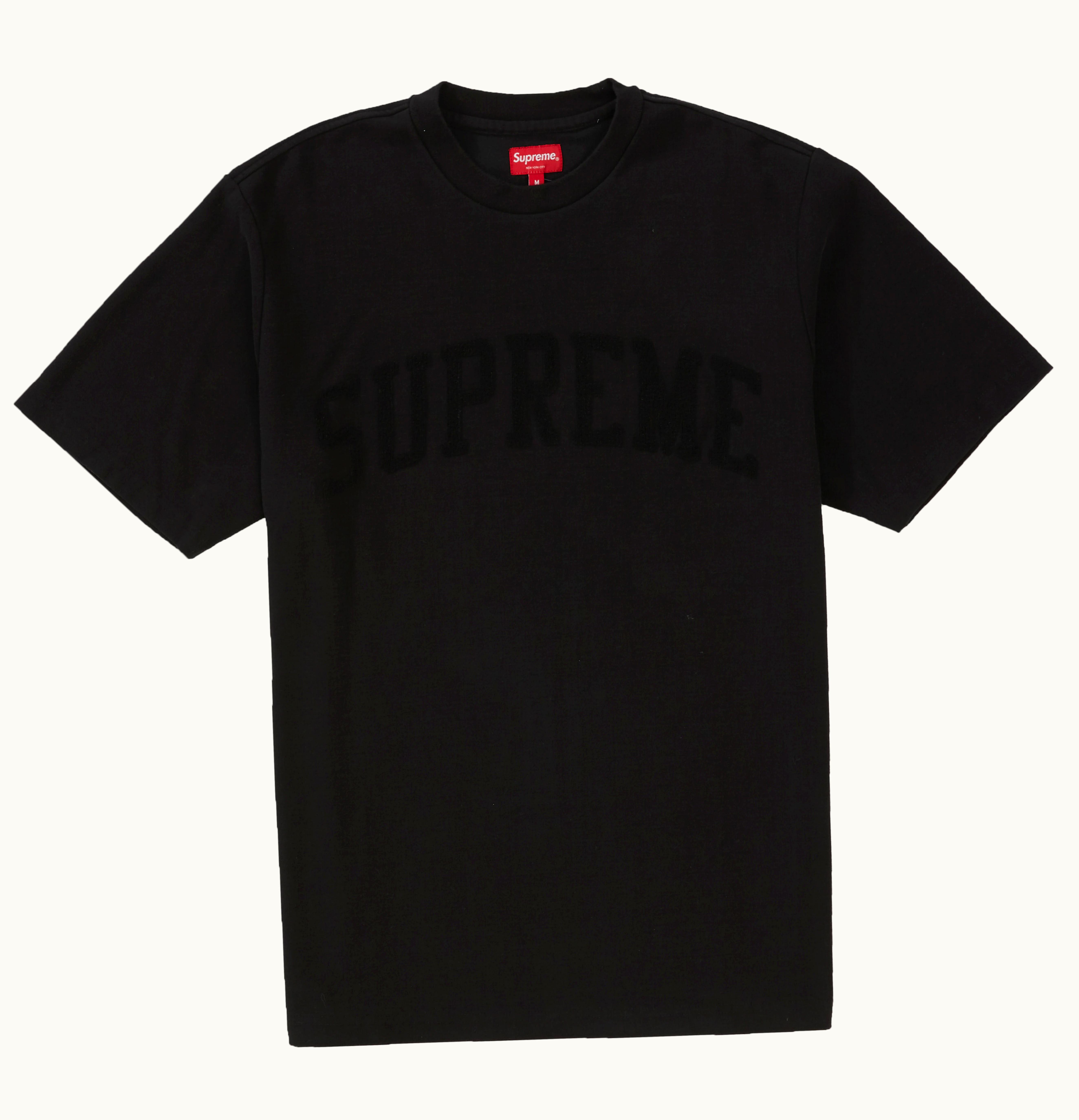 Supreme Chenille Arc Logo S S Top Black | GLINT