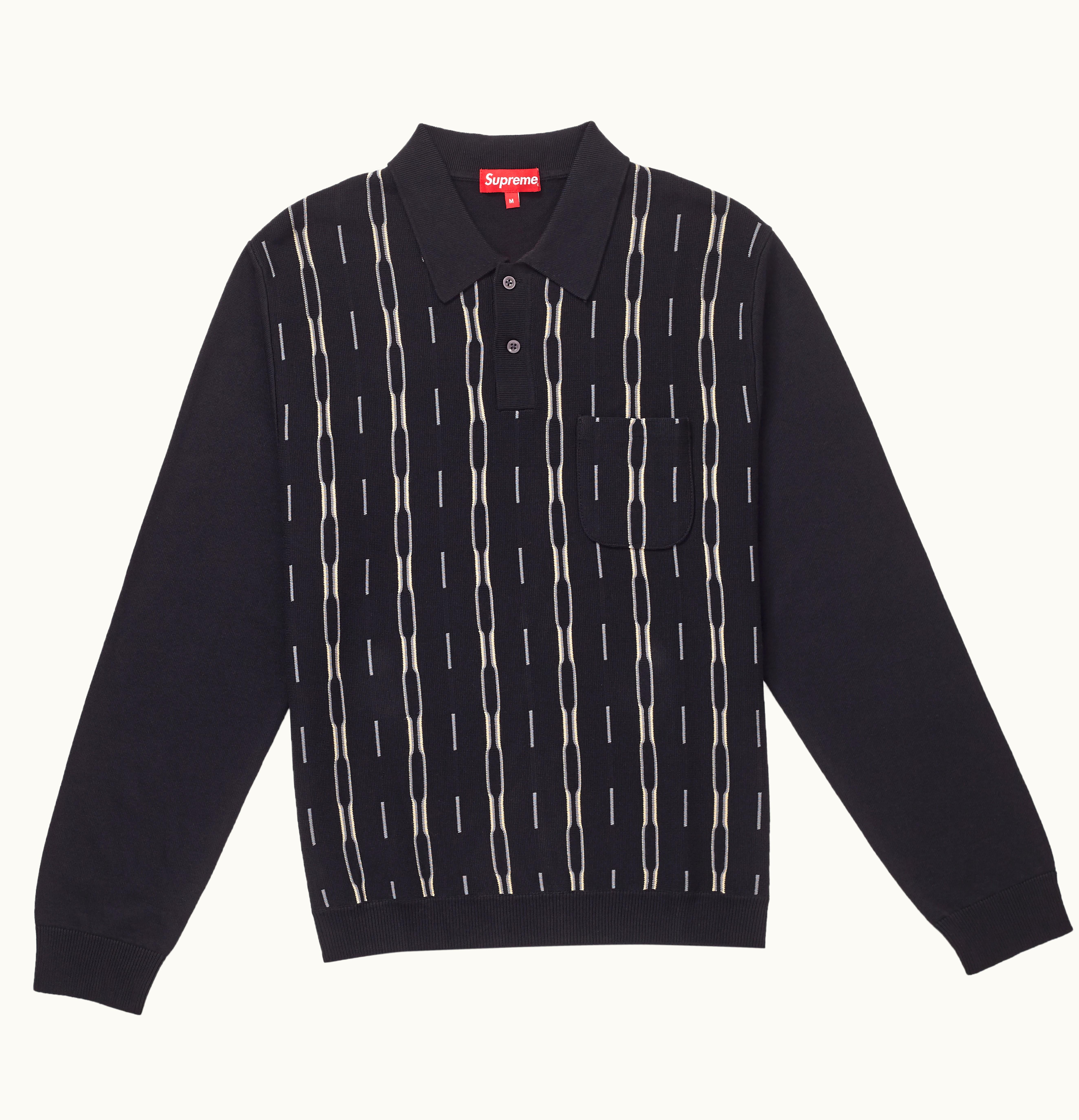 Supreme Vertical Stripe Knit L S Polo Black | GLINT