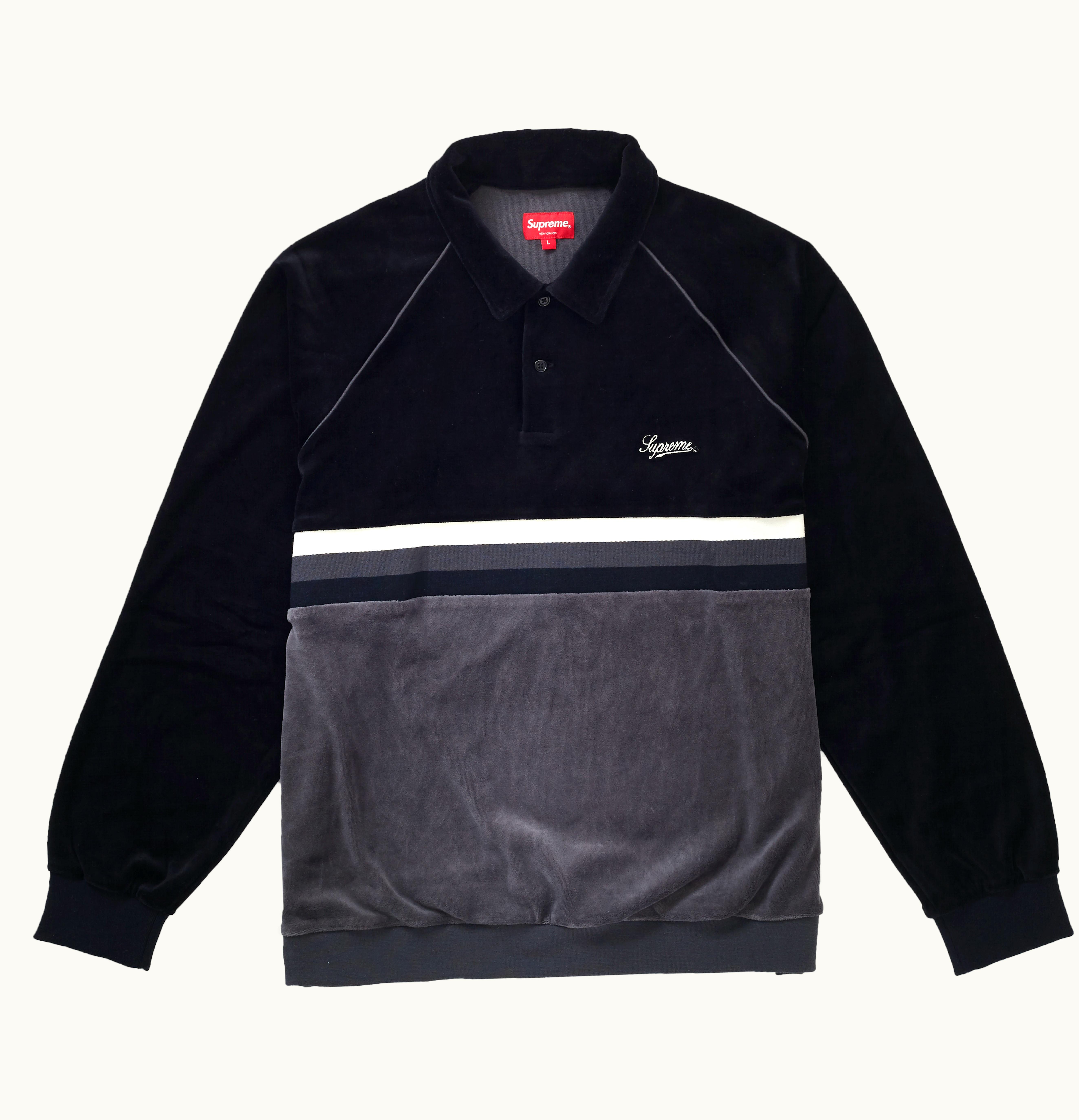 Supreme Stripe Velour Raglan L S Polo Black | GLINT