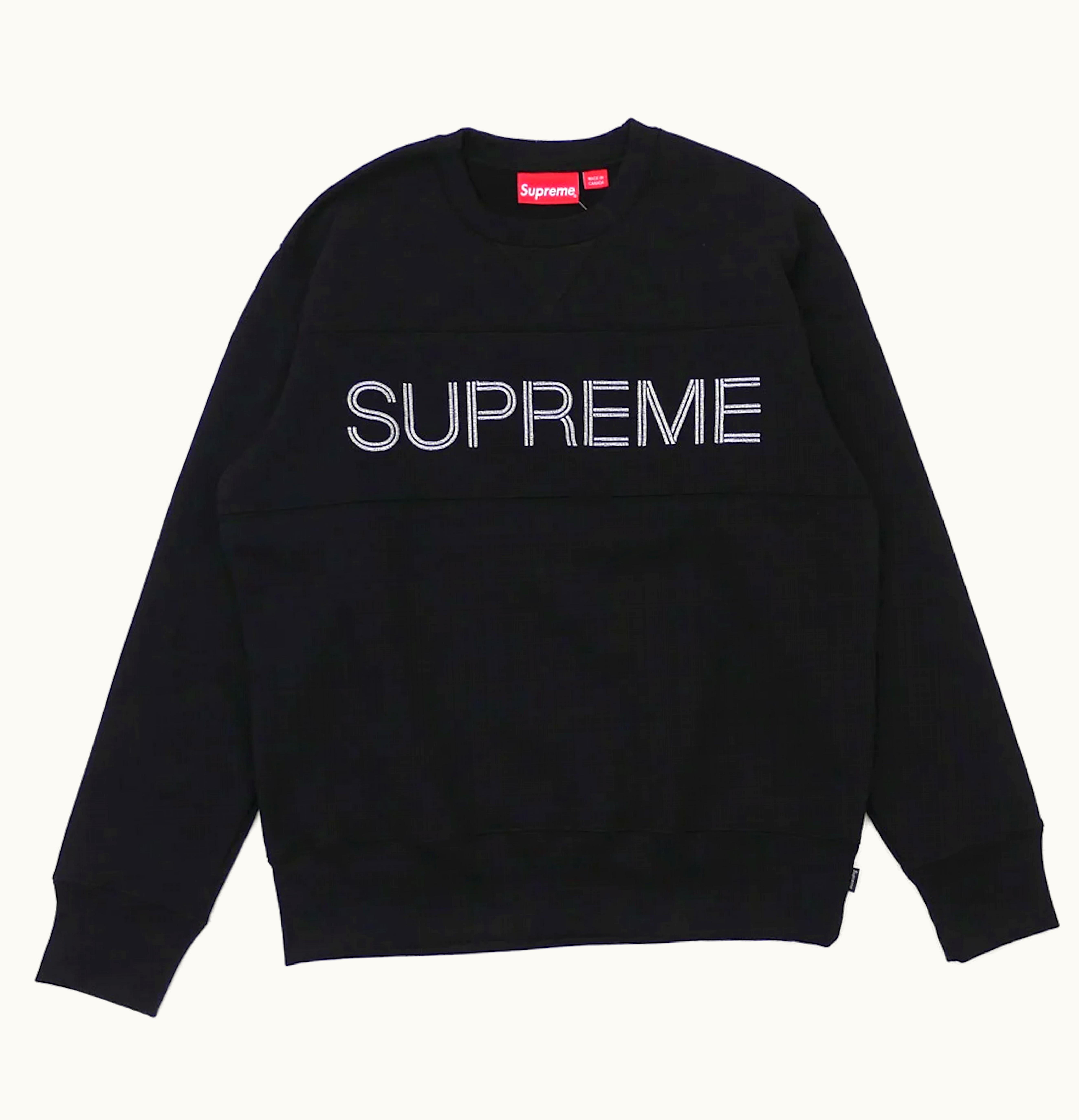 Supreme Zig Zag Stitch Panel Crewneck Black | GLINT