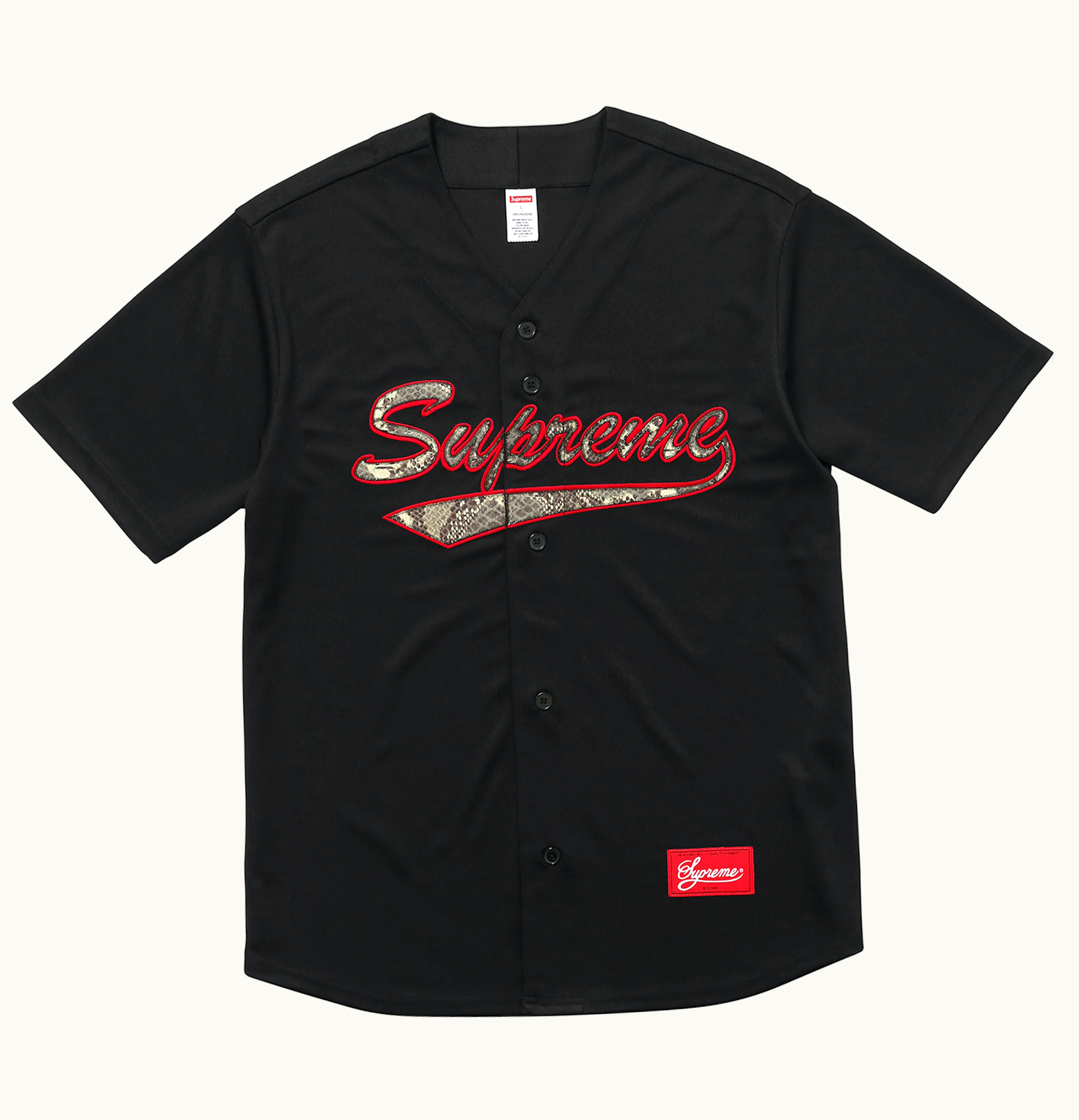 Supreme Snake Script Logo Baseball Jersey Black | GLINT