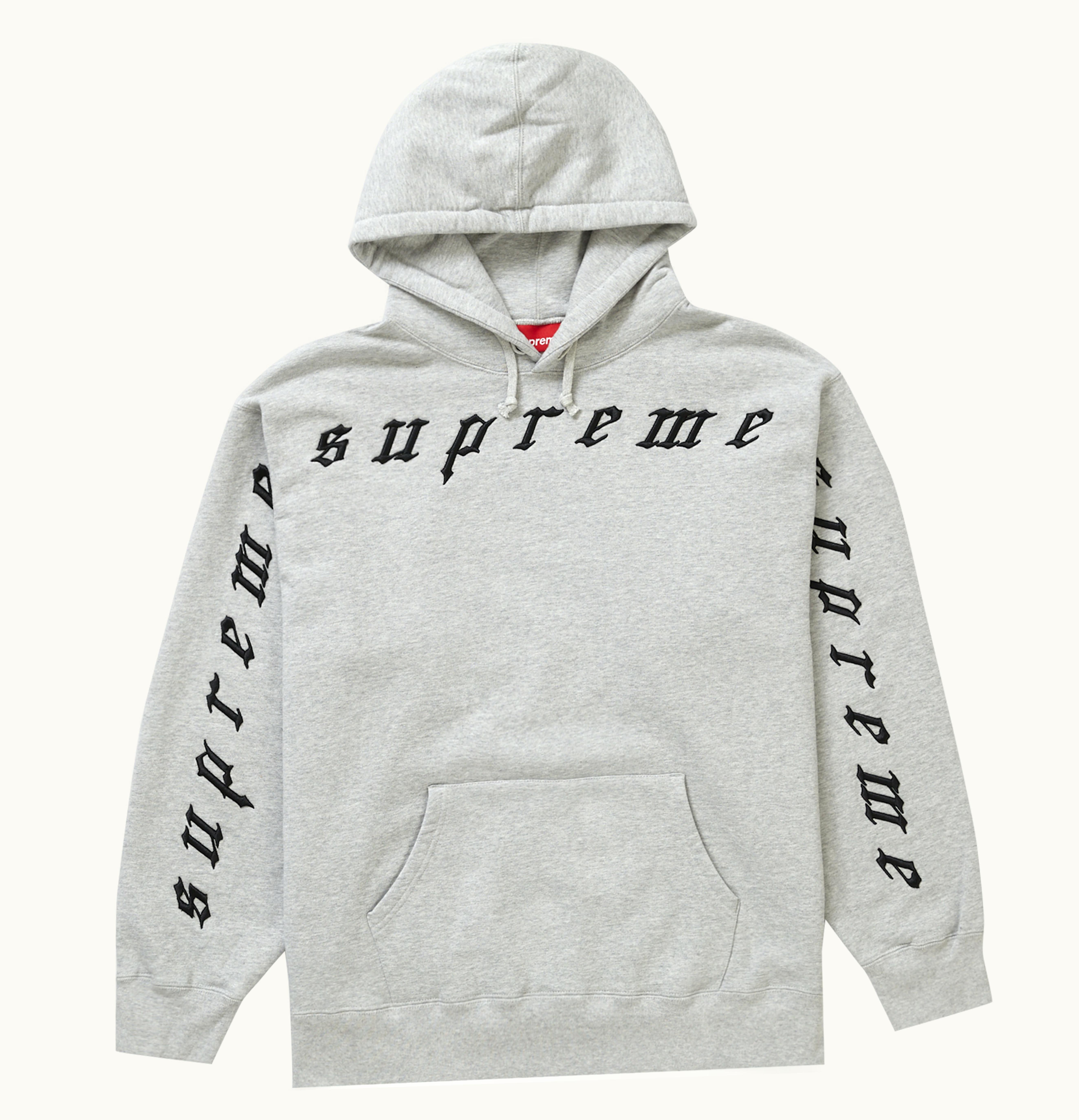 Supreme Raised Embroidery Hooded Sweatshirt Heather Grey | GLINT