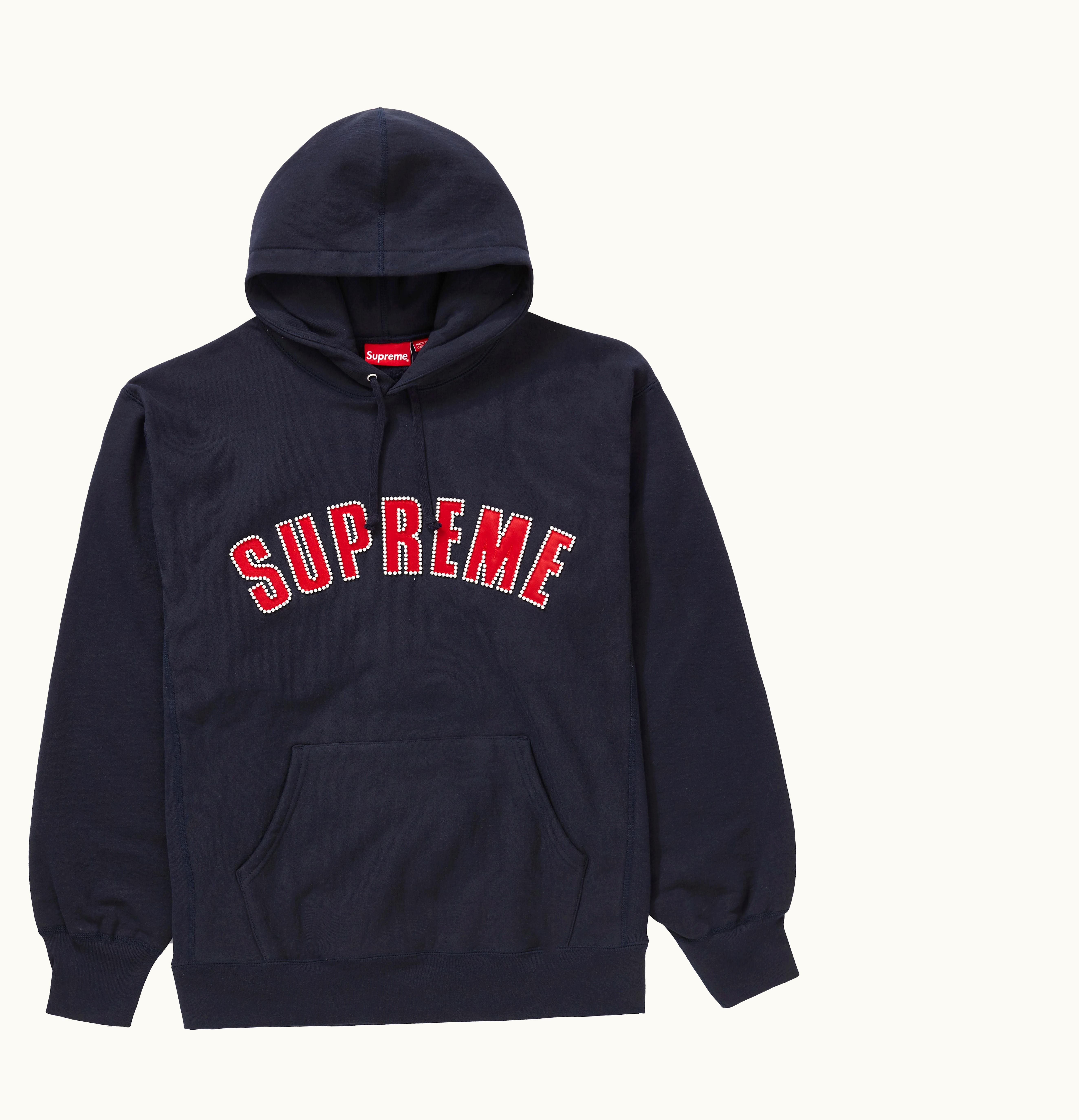 Supreme Pearl Logo Hooded Sweatshirt Navy | GLINT