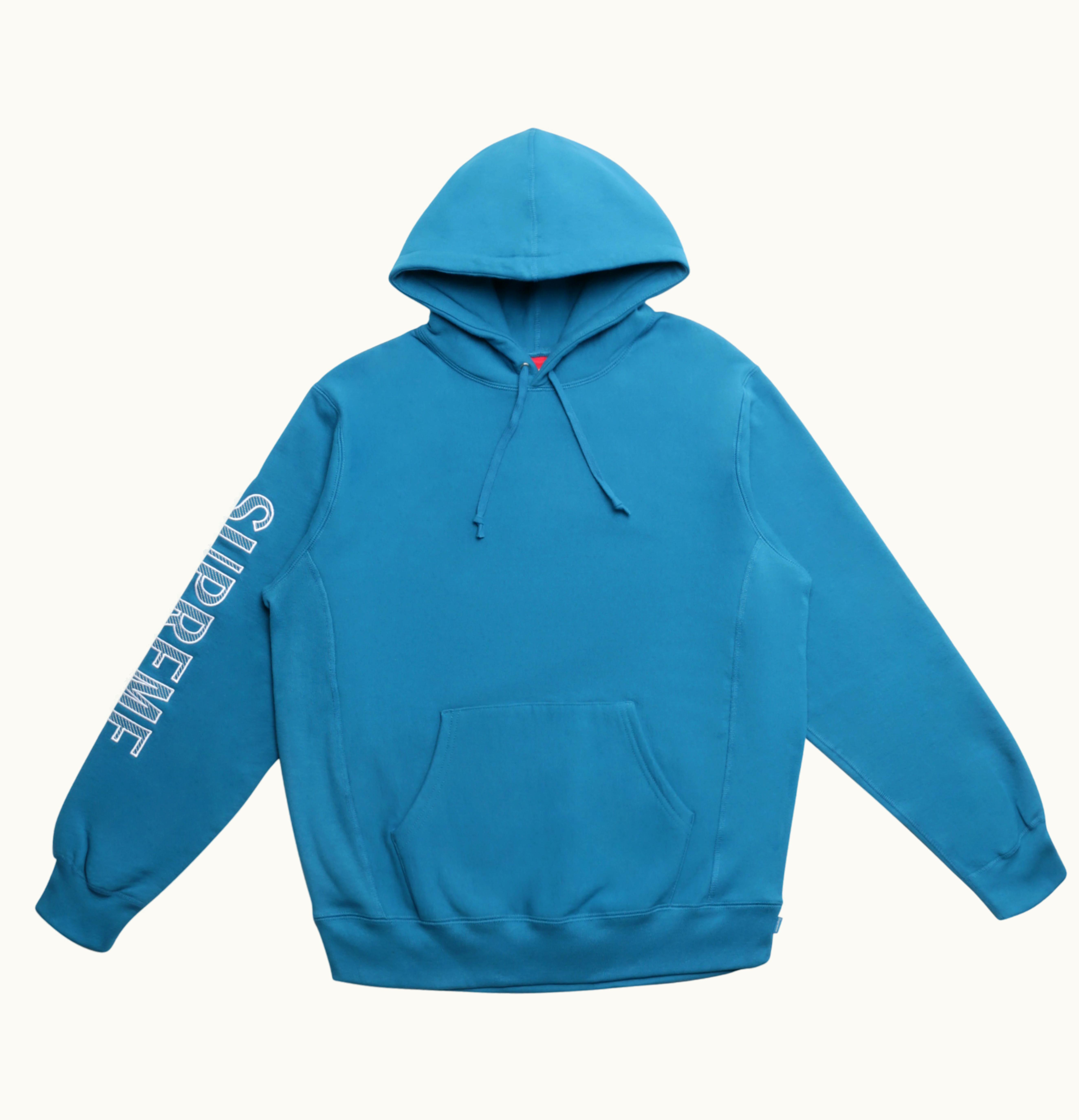 Supreme Sleeve Embroidery Hooded Sweatshirt Dark Aqua | GLINT