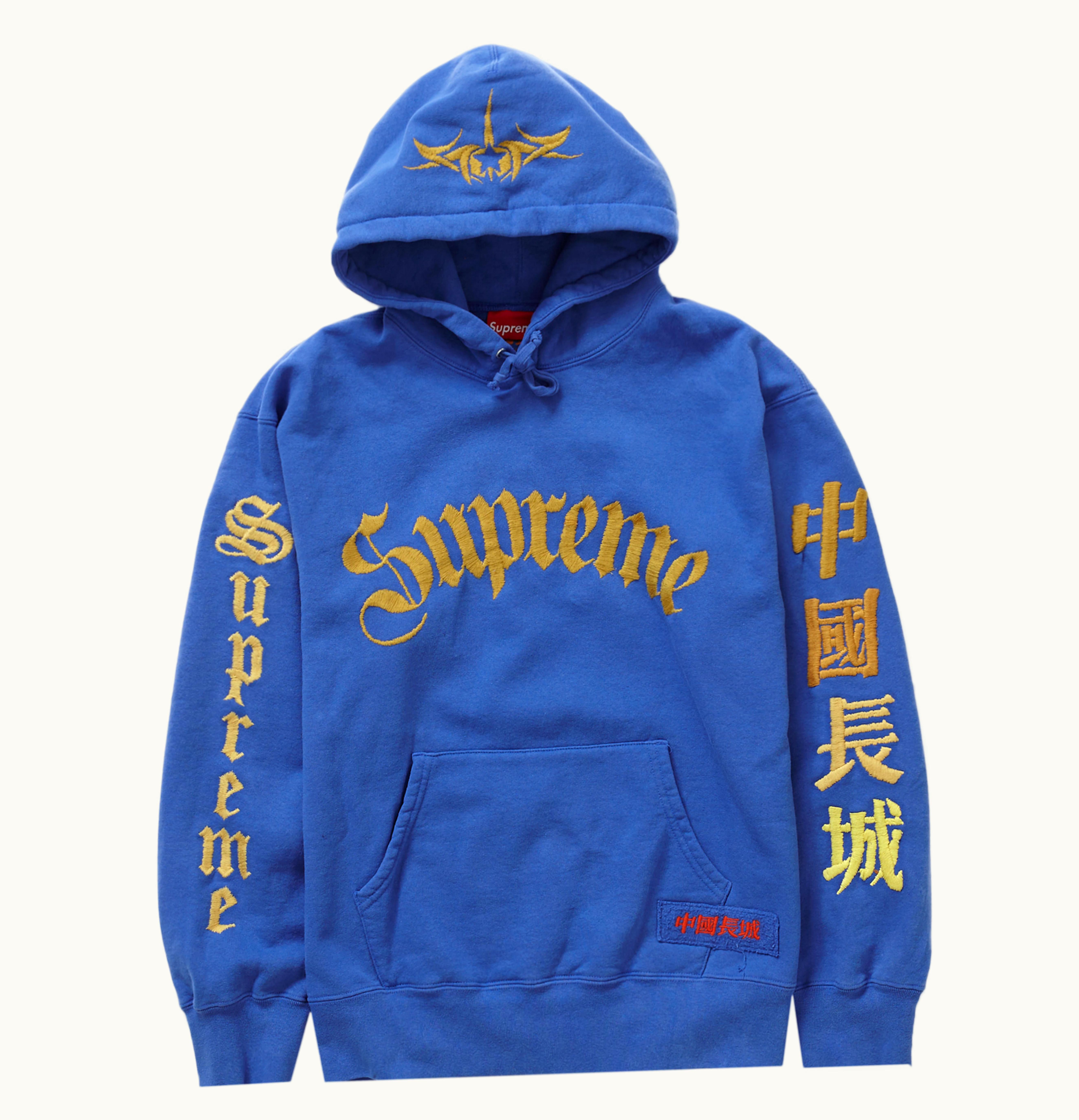 Supreme Great China Wall Sword Hooded Sweatshirt Washed Royal | GLINT