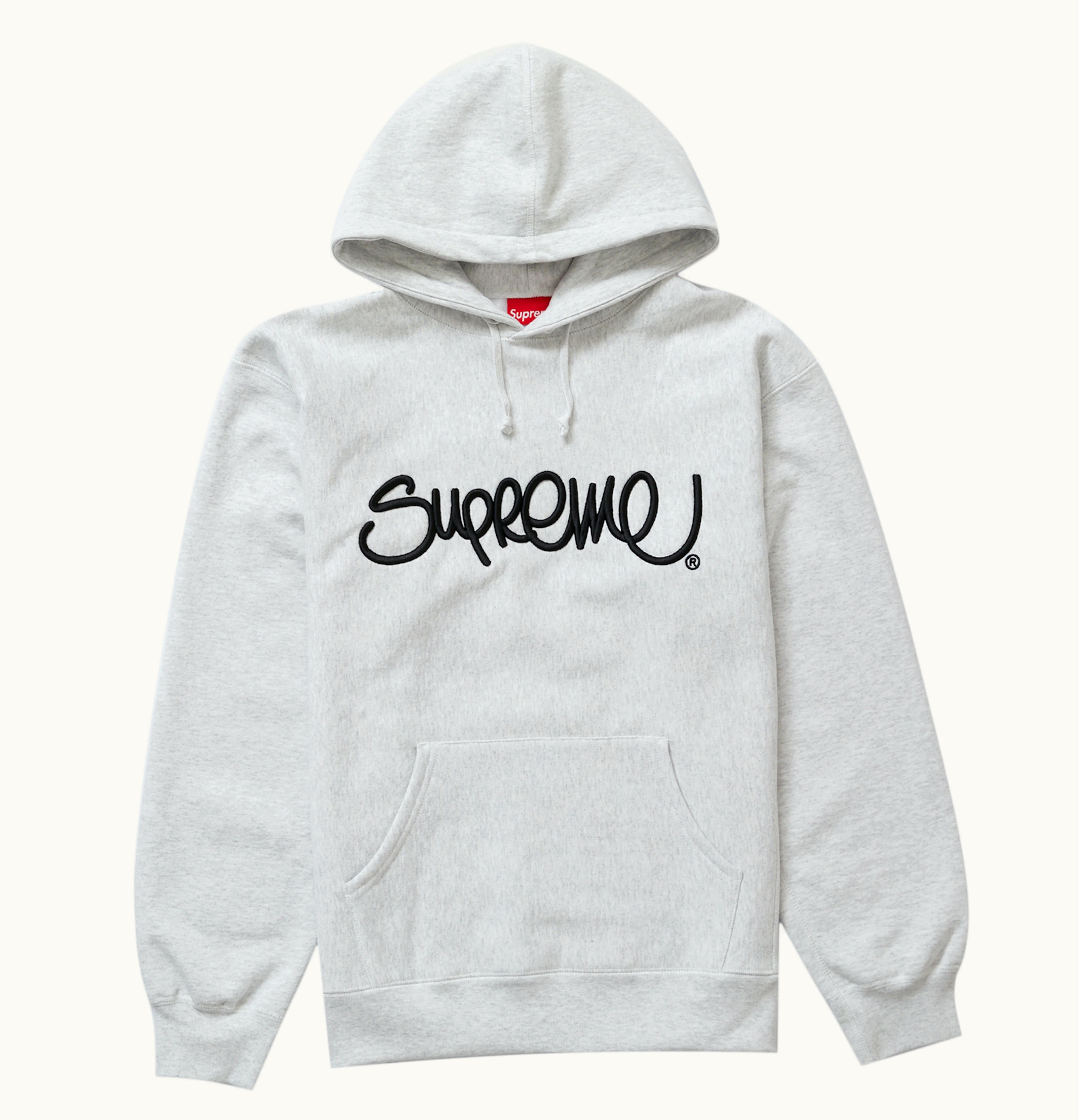 Supreme Raised Handstyle Hooded Sweatshirt Ash Grey | GLINT