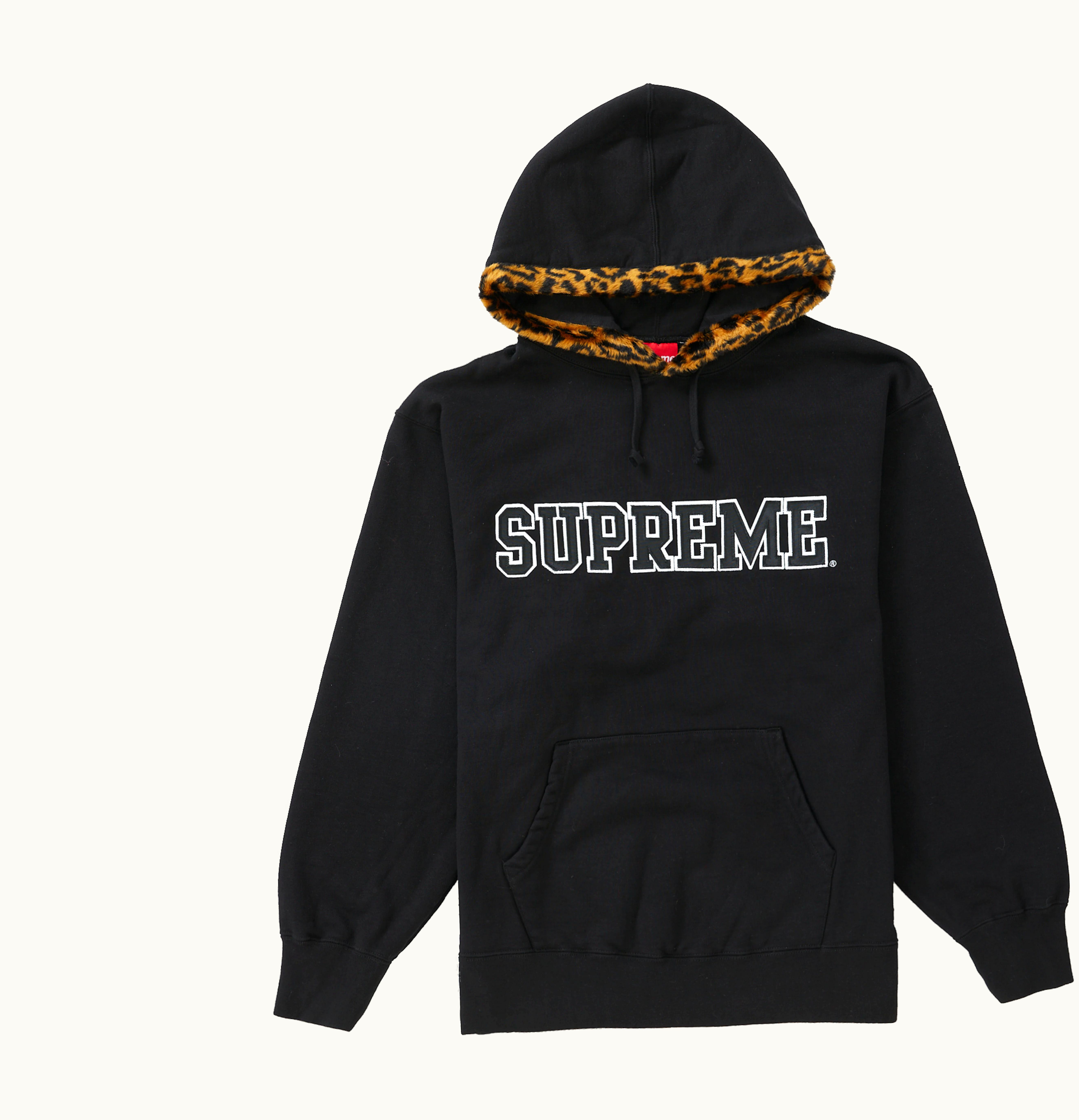 Supreme Leopard Trim Hooded Sweatshirt Black | GLINT