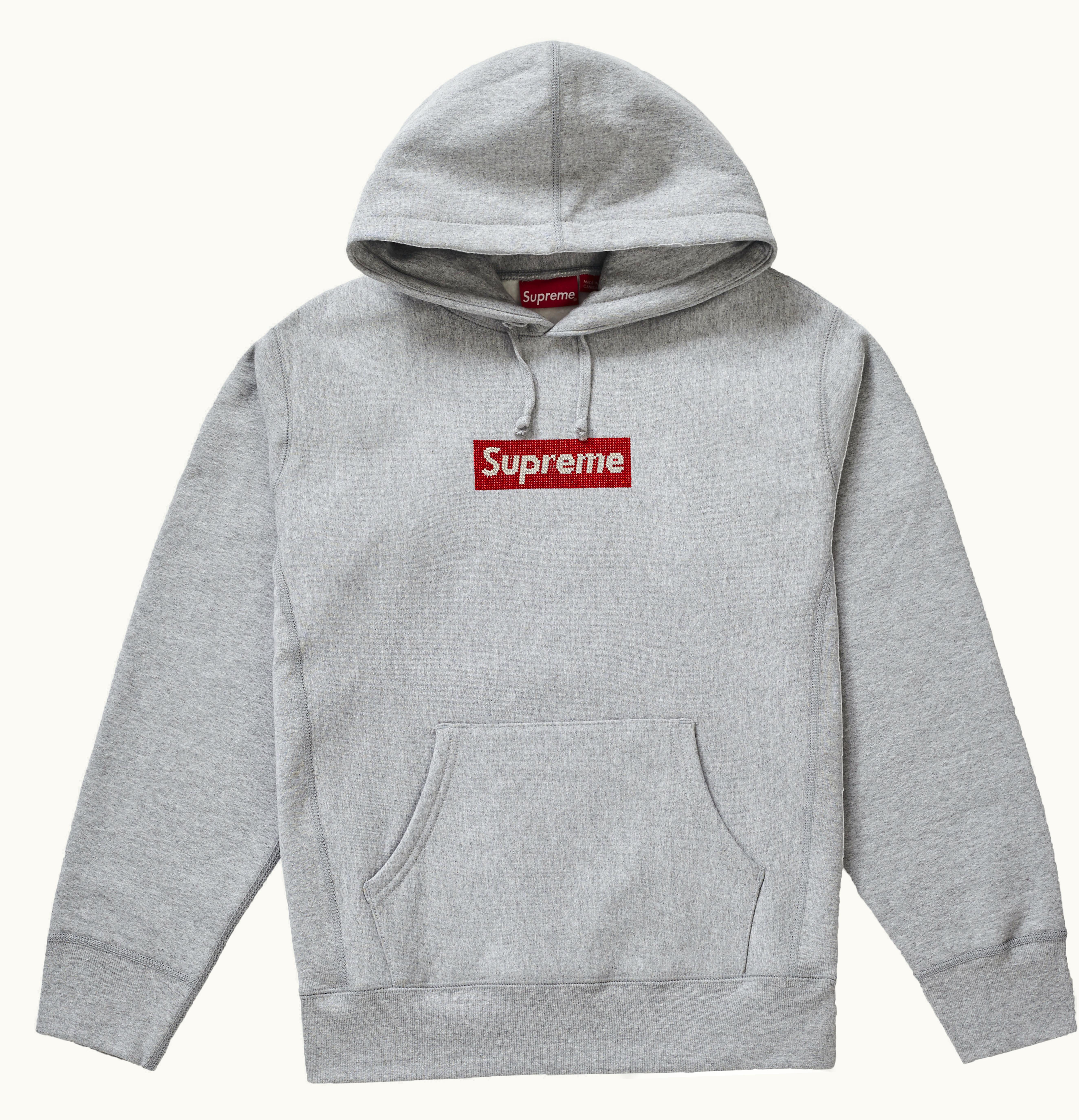 Supreme Swarovski Box Logo Hooded Sweatshirt Heather Grey | GLINT