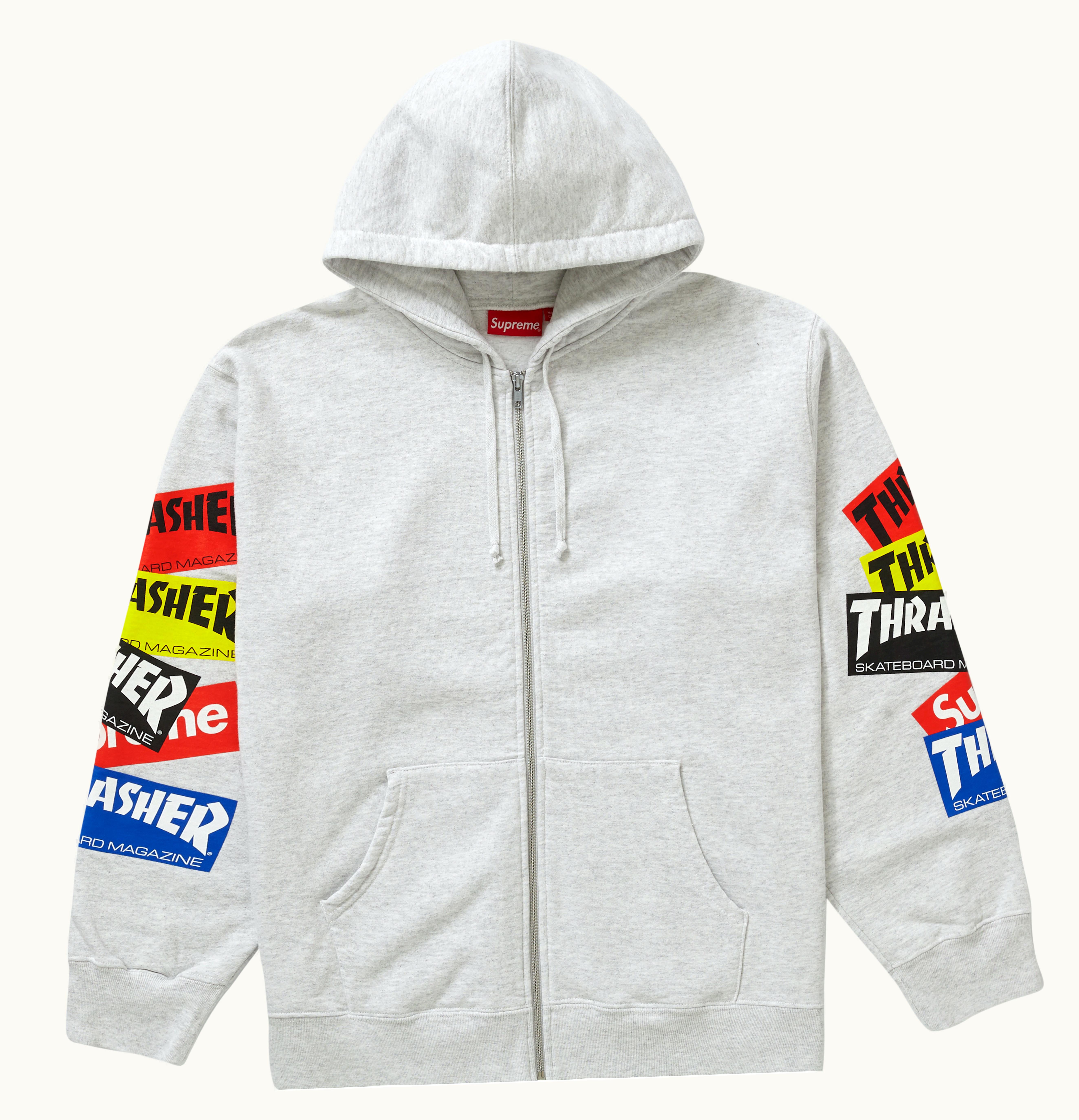 Supreme Thrasher Multi Logo Zip Up Hooded Sweatshirt Ash Grey | GLINT