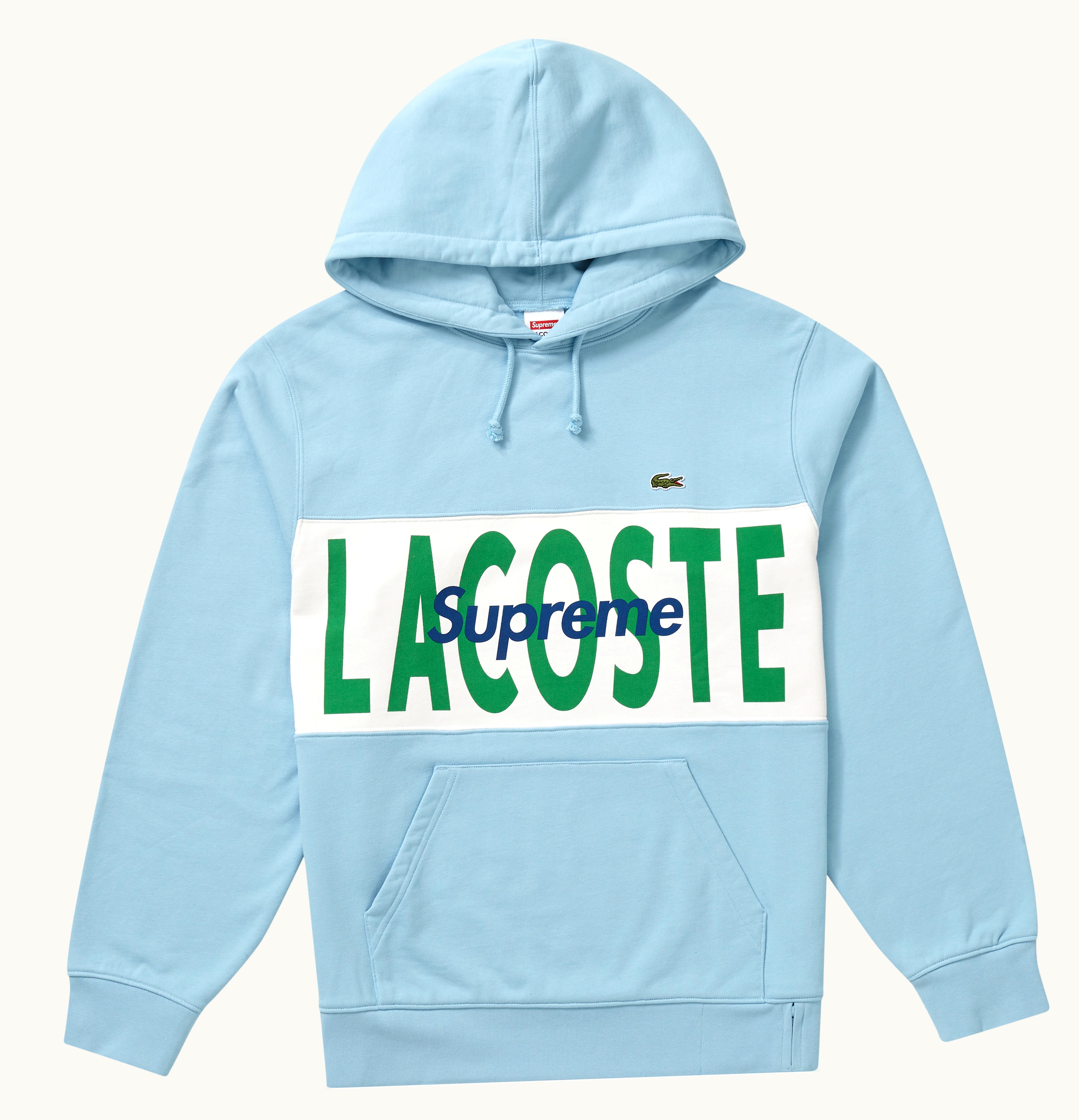 Supreme LACOSTE Logo Panel Hooded Sweatshirt Light Blue | GLINT