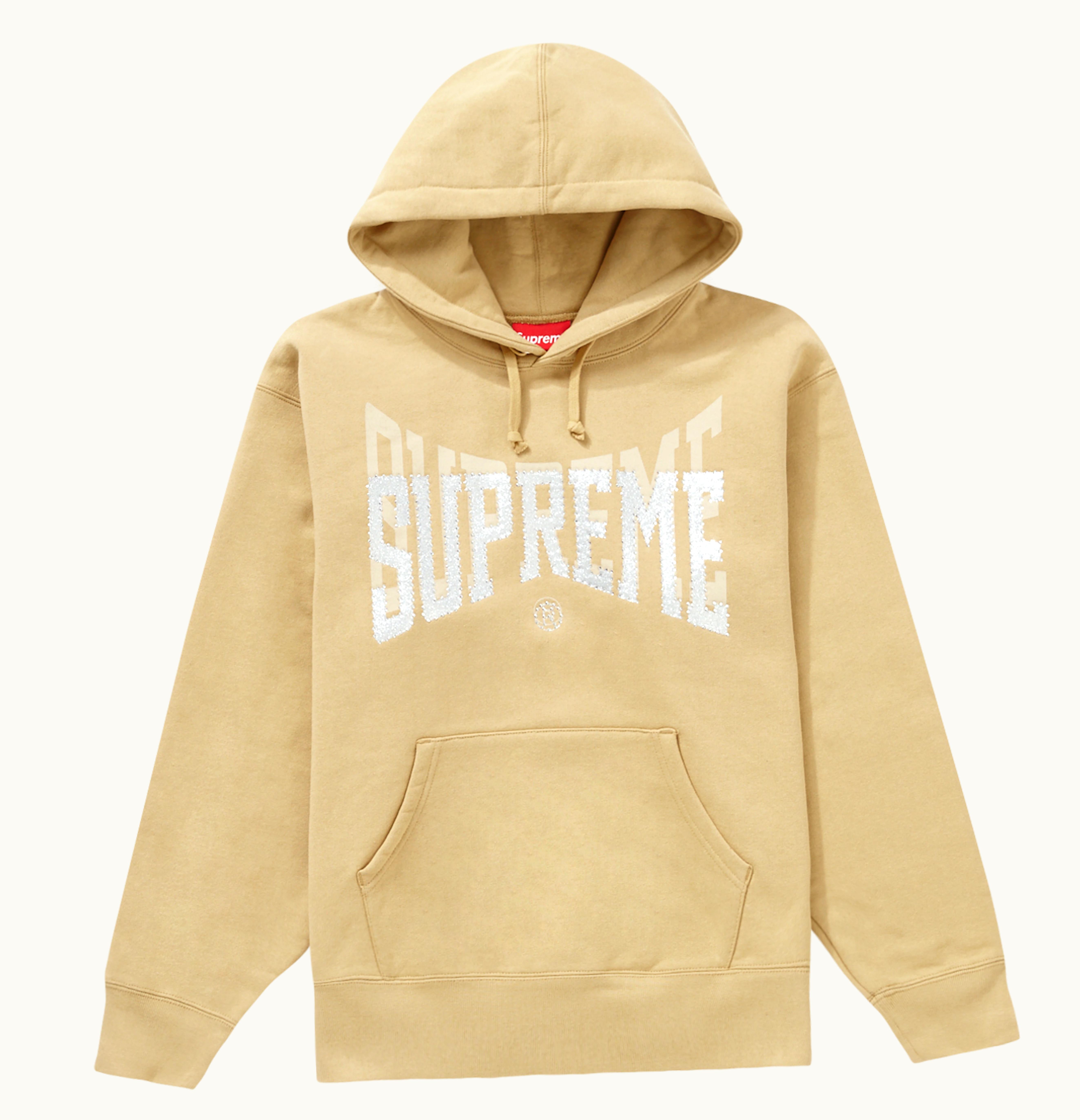 Supreme Rhinestone Shadow Hooded Sweatshirt Dark Tan | GLINT