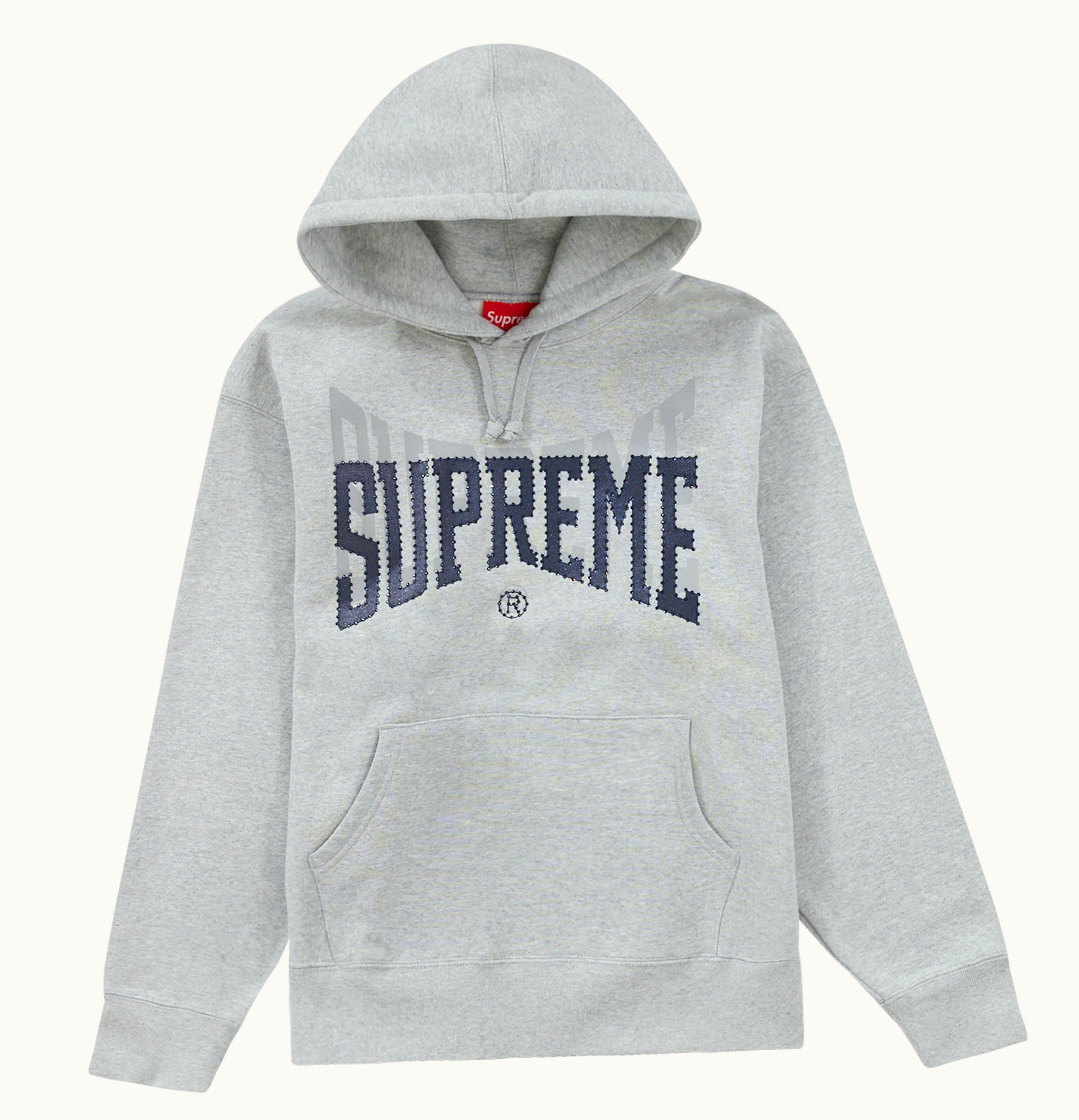 Supreme Rhinestone Shadow Hooded Sweatshirt Heather Grey | GLINT