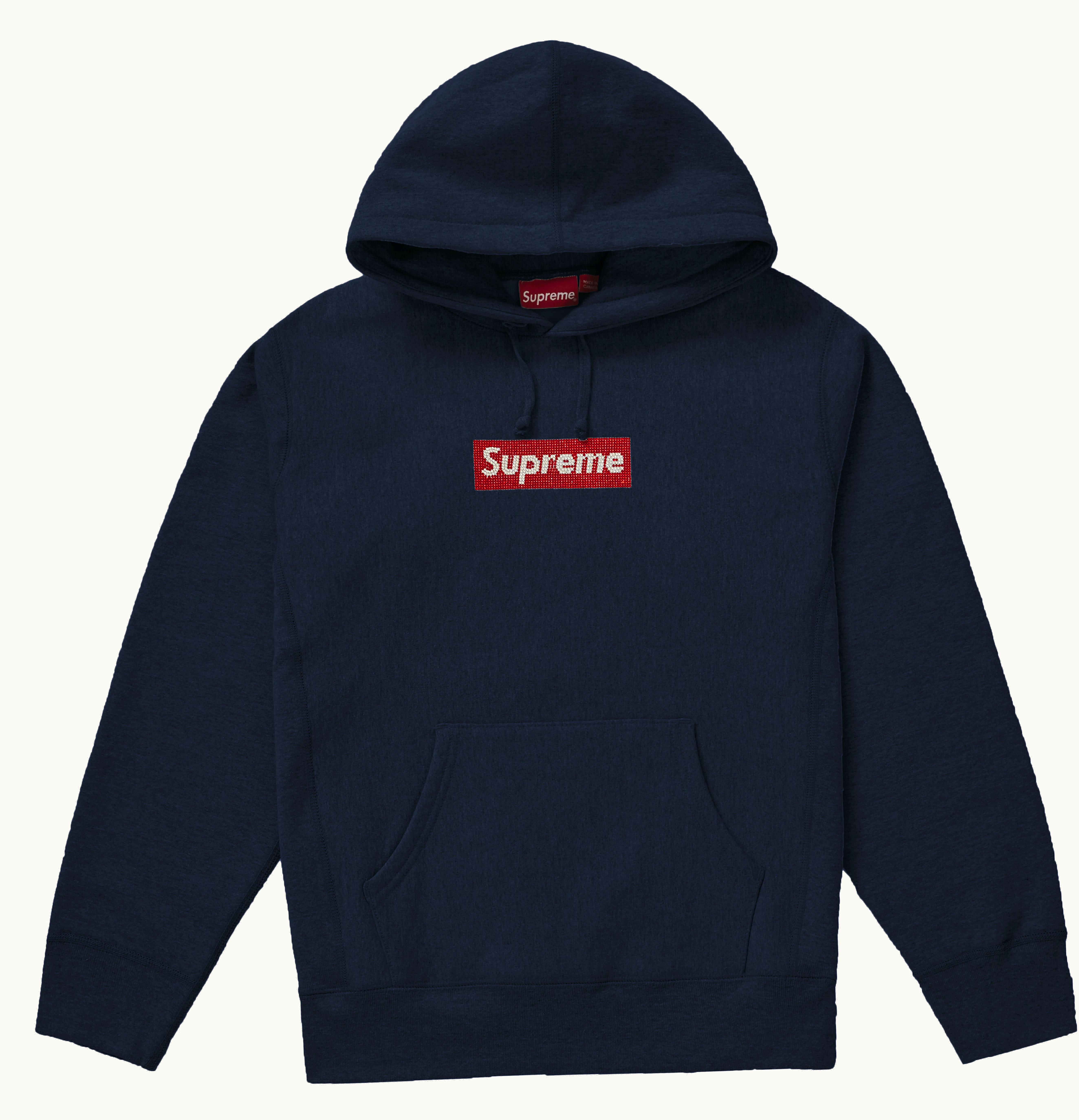 Supreme Swarovski Box Logo Hooded Sweatshirt Navy | GLINT