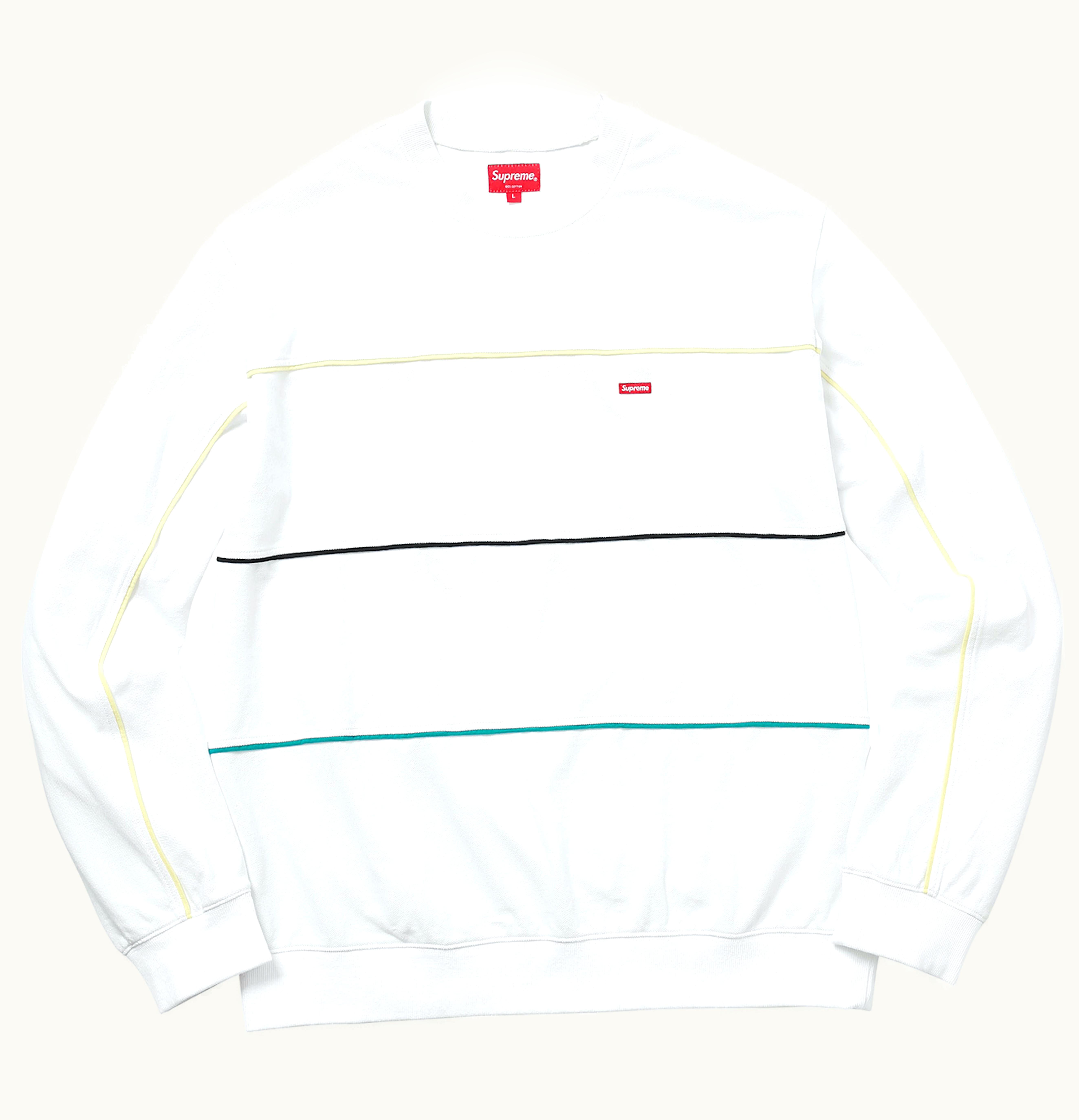 Supreme Multicolor Piping Pique Crewneck White | GLINT
