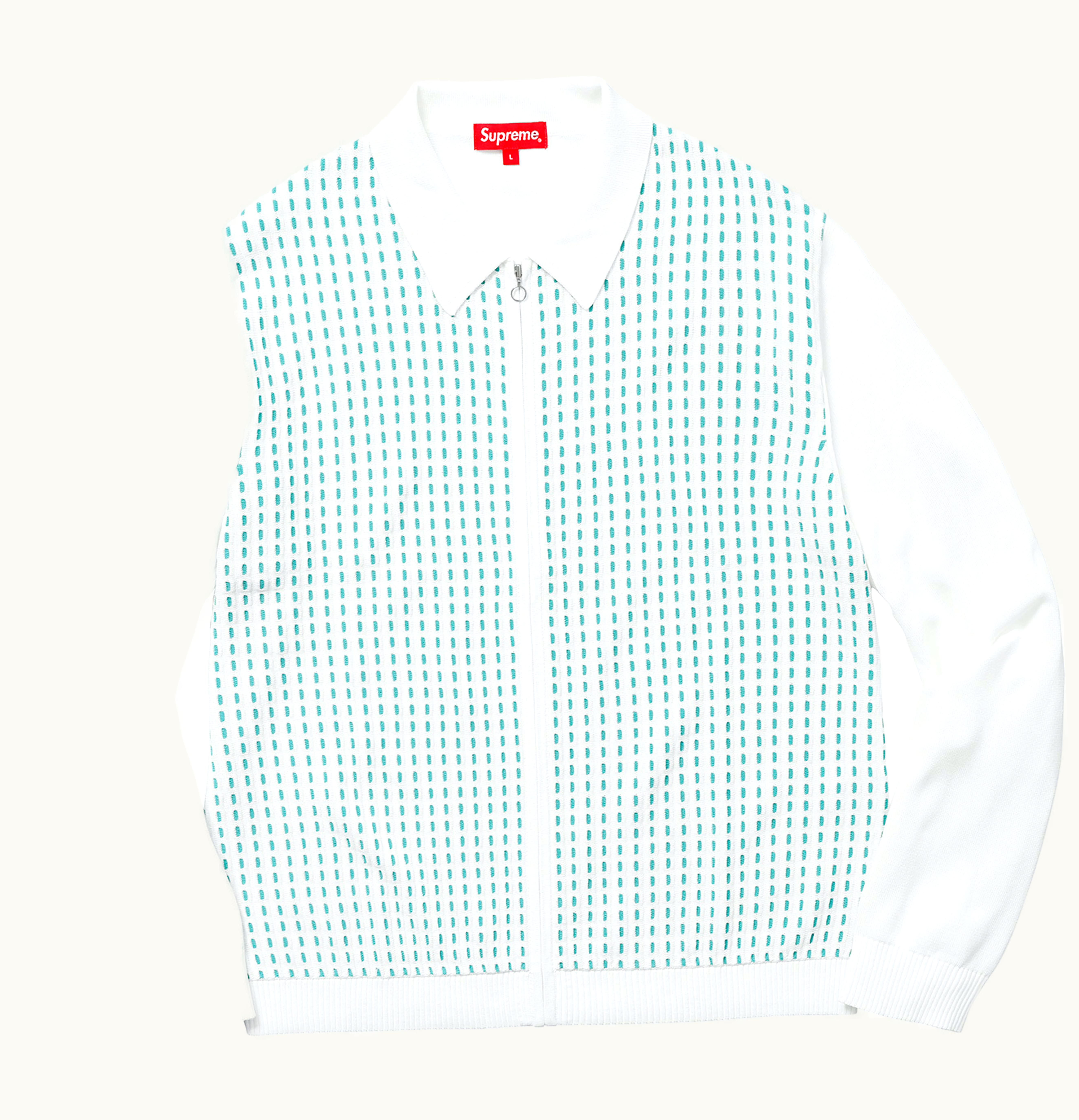 Supreme Dashes Zip Up Knit Polo White | GLINT