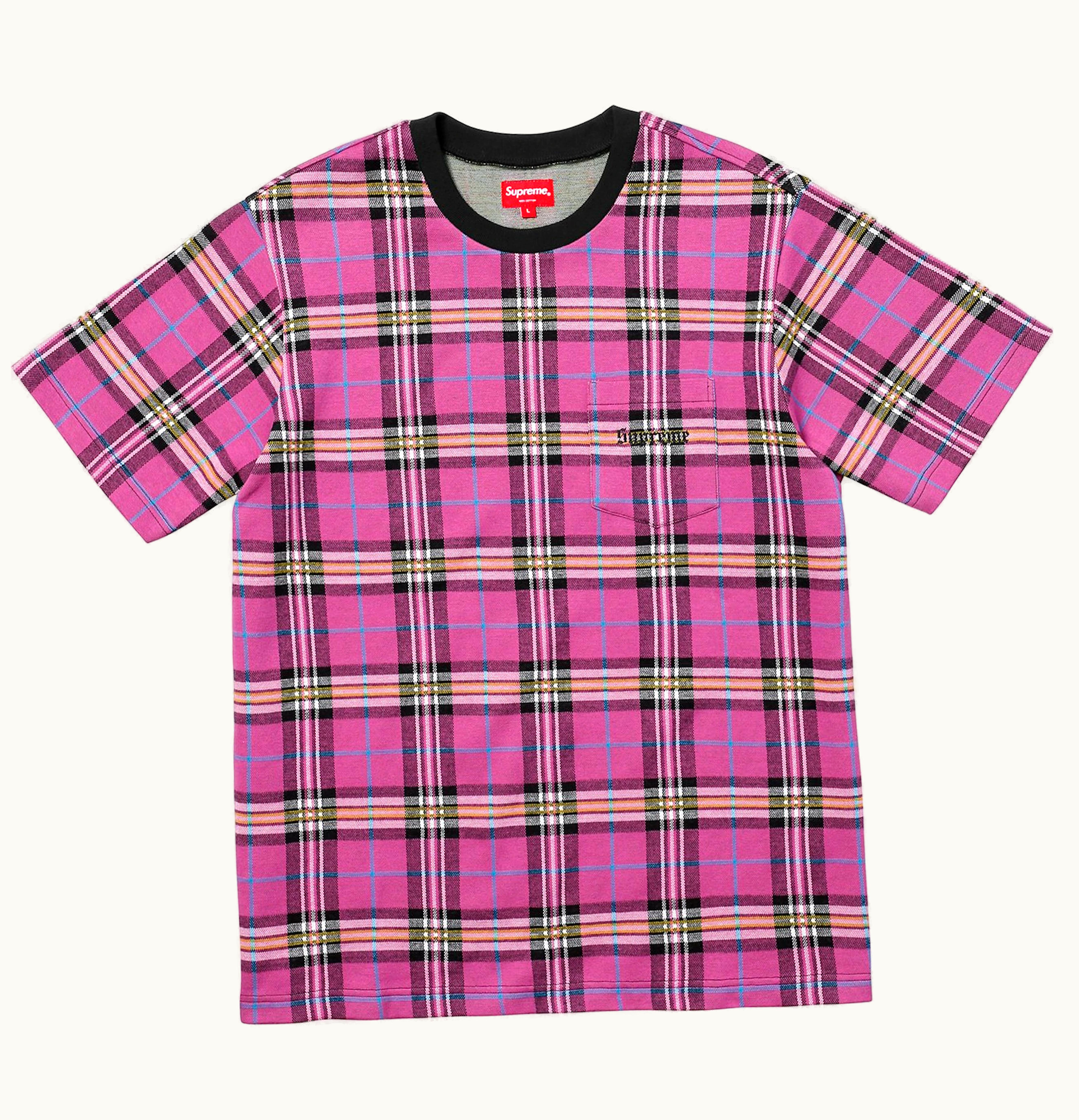 Supreme Jacquard Tartan Plaid Pocket Tee Pink | GLINT