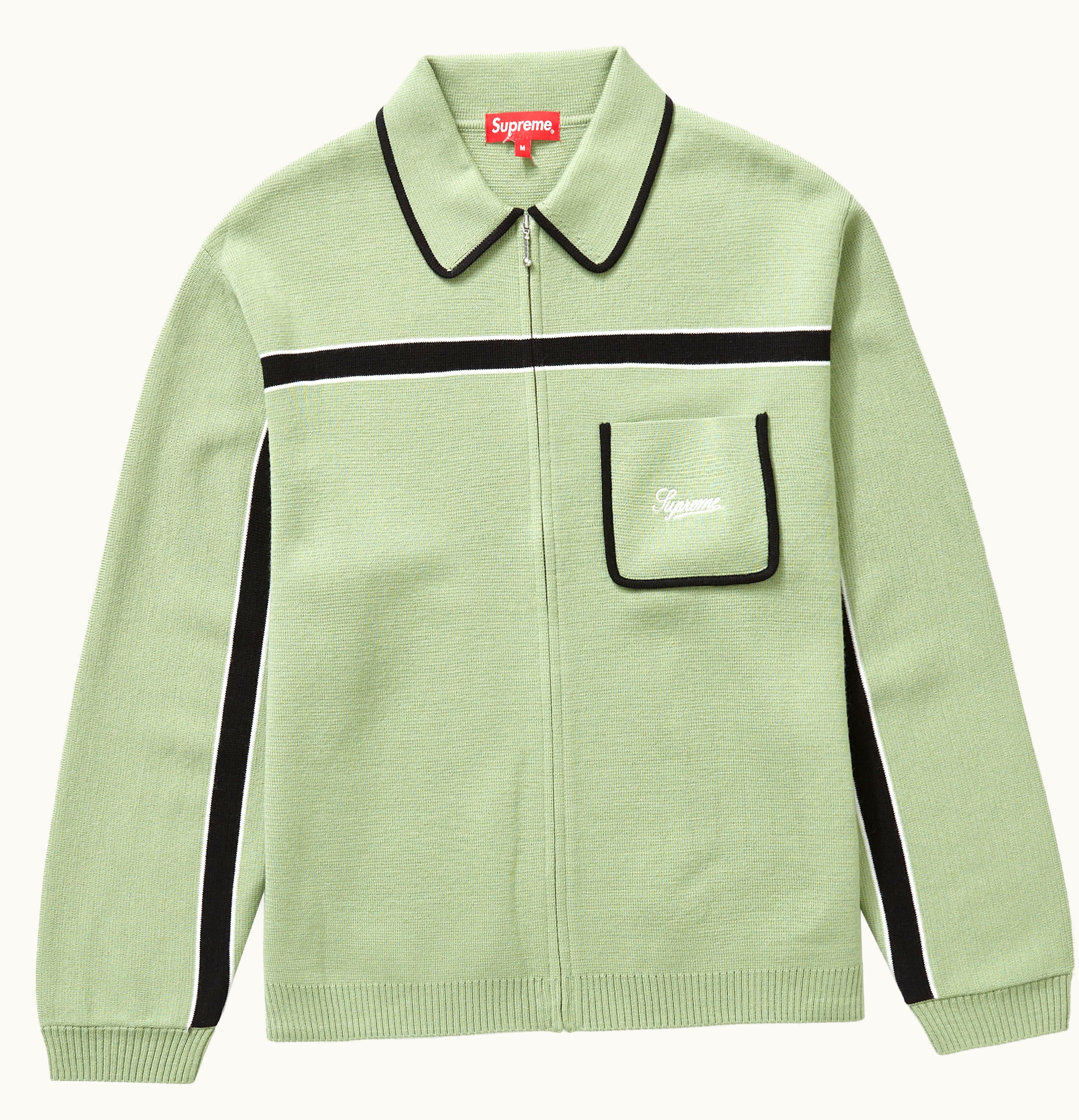 Supreme Chest Stripe Zip Up Cardigan Dusty Green | GLINT