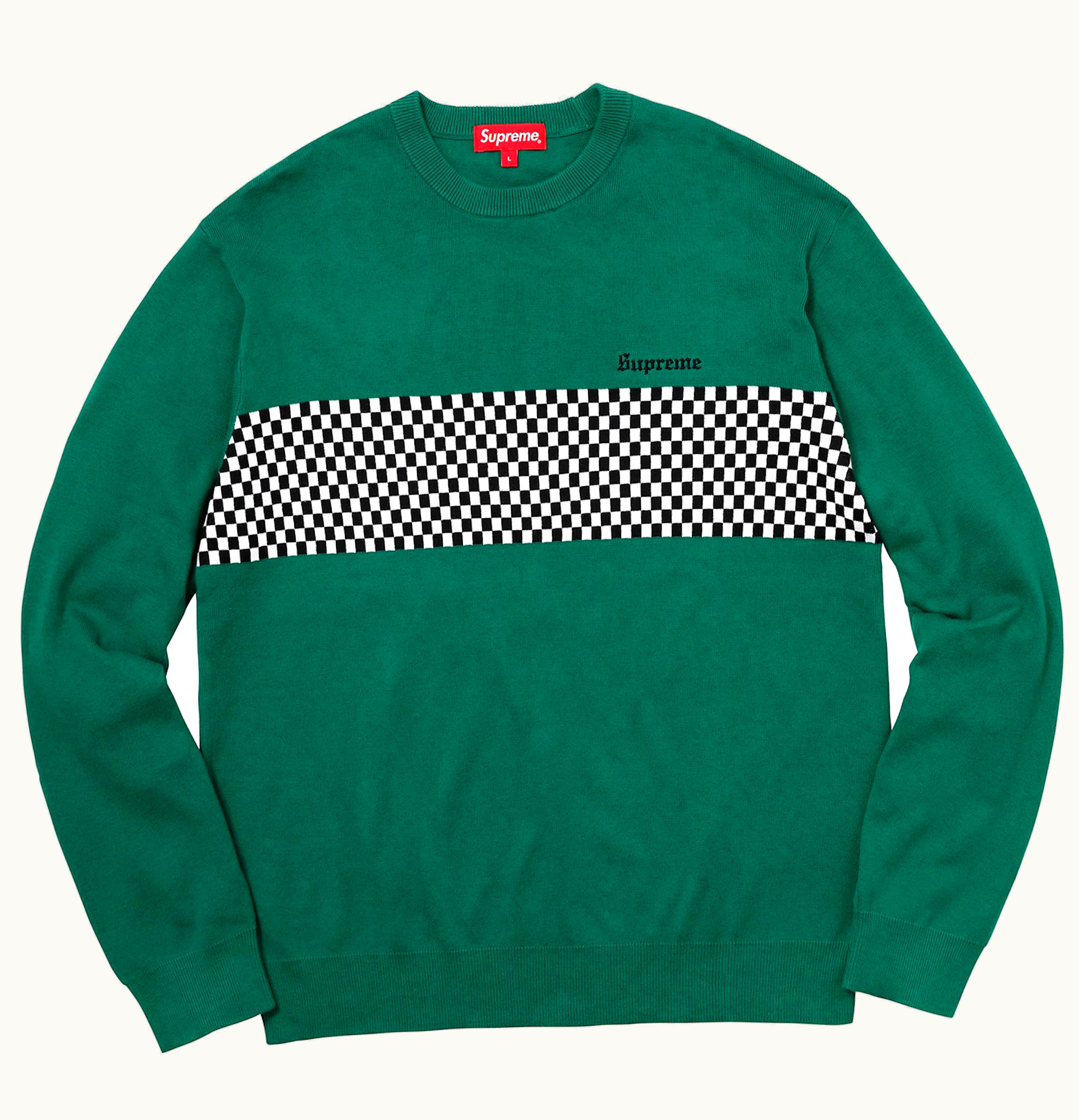 Supreme Checkered Panel Crewneck Sweater Forest Green | GLINT