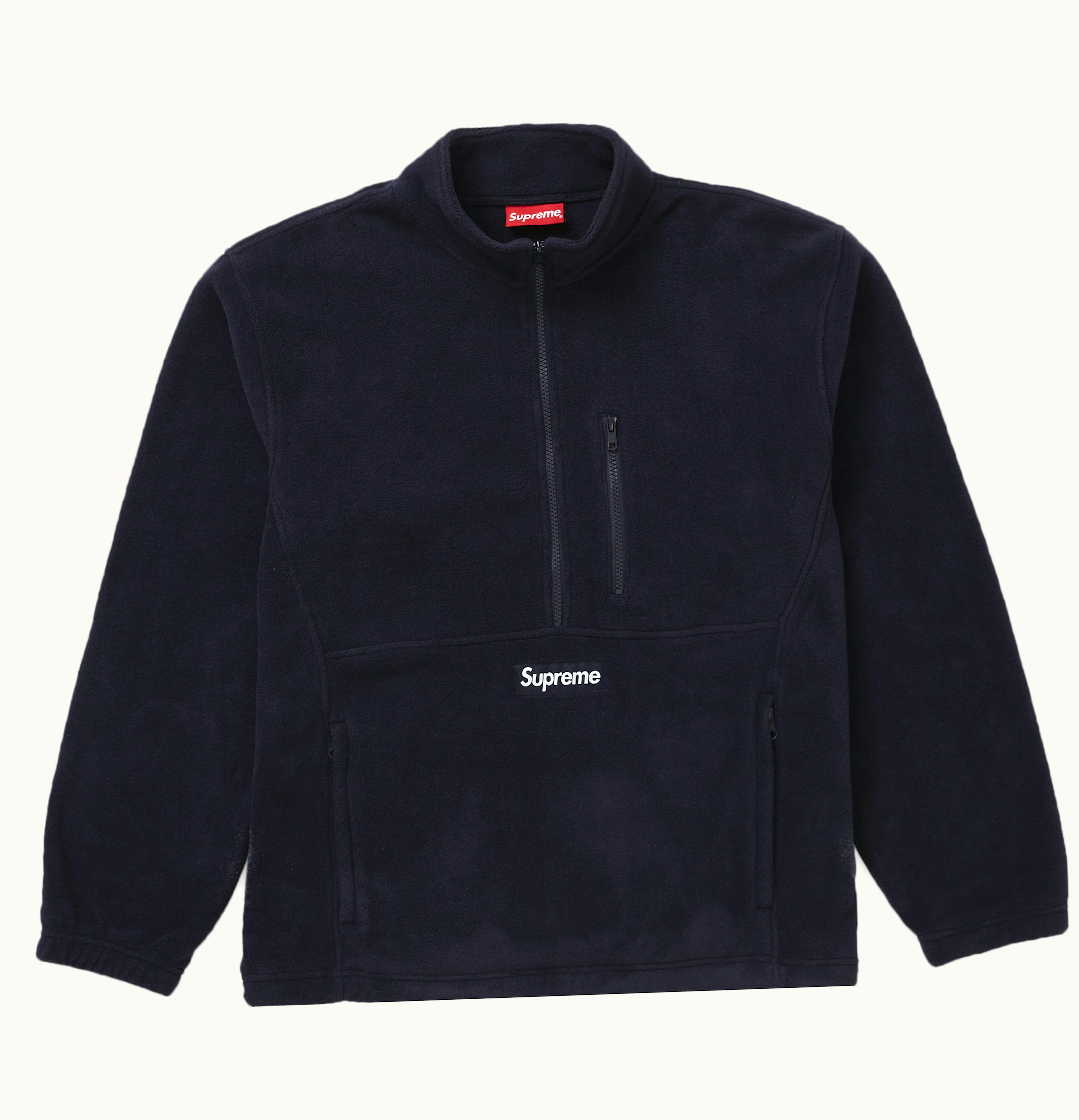 GLINT offered the black Supreme Polartec Half Zip Pullover as part of the Fall/Winter 2021 Week 17 release, alongside a The North Face collaboration. Crafted from Polartec 200 fleece material, this pullover boasts a minimalistic Supreme logo on its front. It was made available on December 16th, 2021, for a standard retail price of $138 on GLINT.