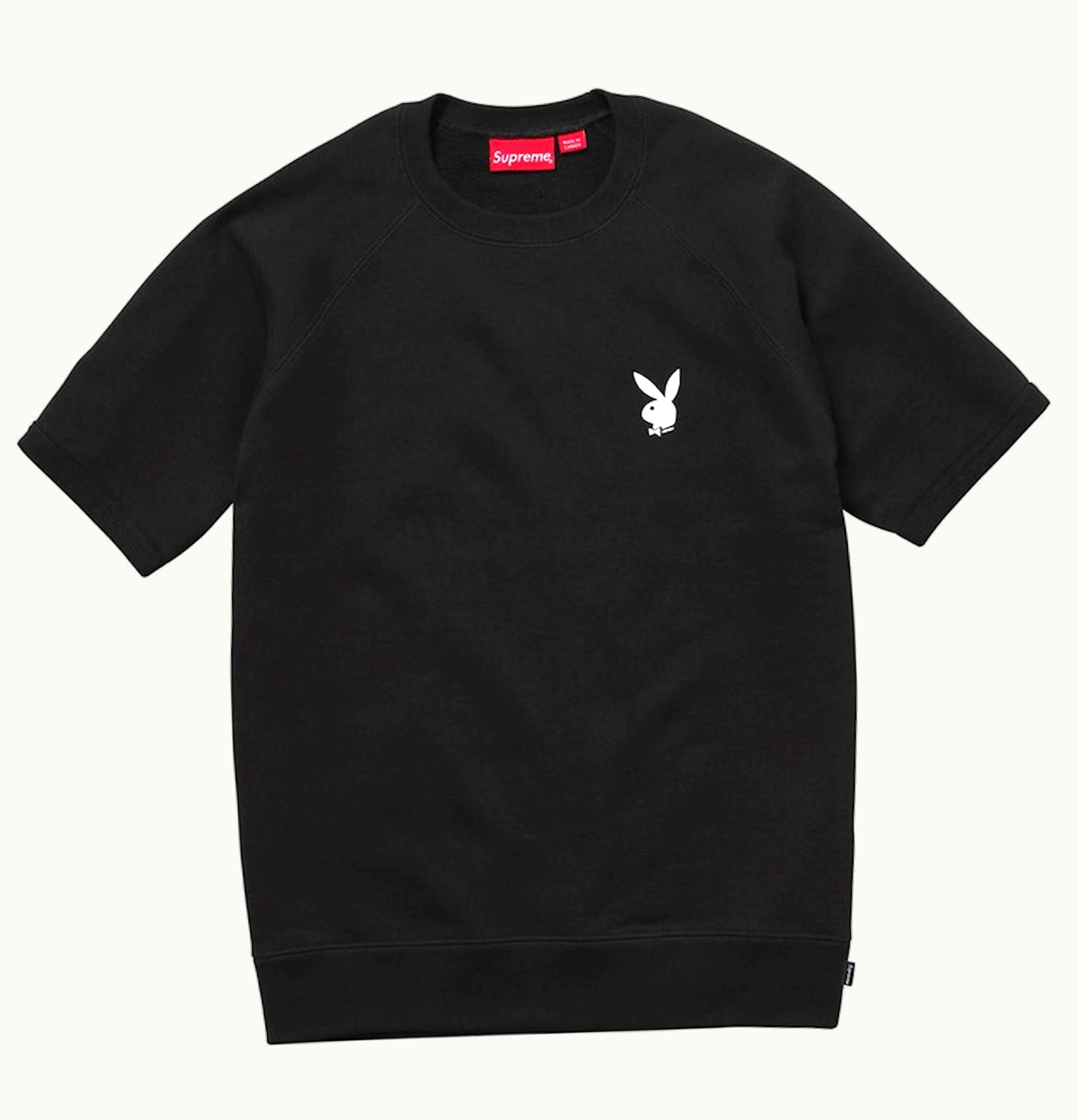 Supreme Playboy SS Playboy SS is a collaboration between Supreme, the fashion brand, and Playboy, the famed men's magazine. The product is a basic short-sleeve t-shirt made of premium quality cotton material that is comfortable to wear during all seasons. The shirt features the iconic Supreme logo on the front as well as a large Playboy bunny logo at the back. The logos are printed in contrasting colors, with the bunny in black and white and the Supreme logo in red. This t-shirt is a limited edition item that combines the signature style of both brands, making it a must-have in every streetwear enthusiast's wardrobe. It is perfect for a casual day out or a night out with friends. Get ready to turn heads and make a statement with the Supreme Playboy SS Playboy SS.