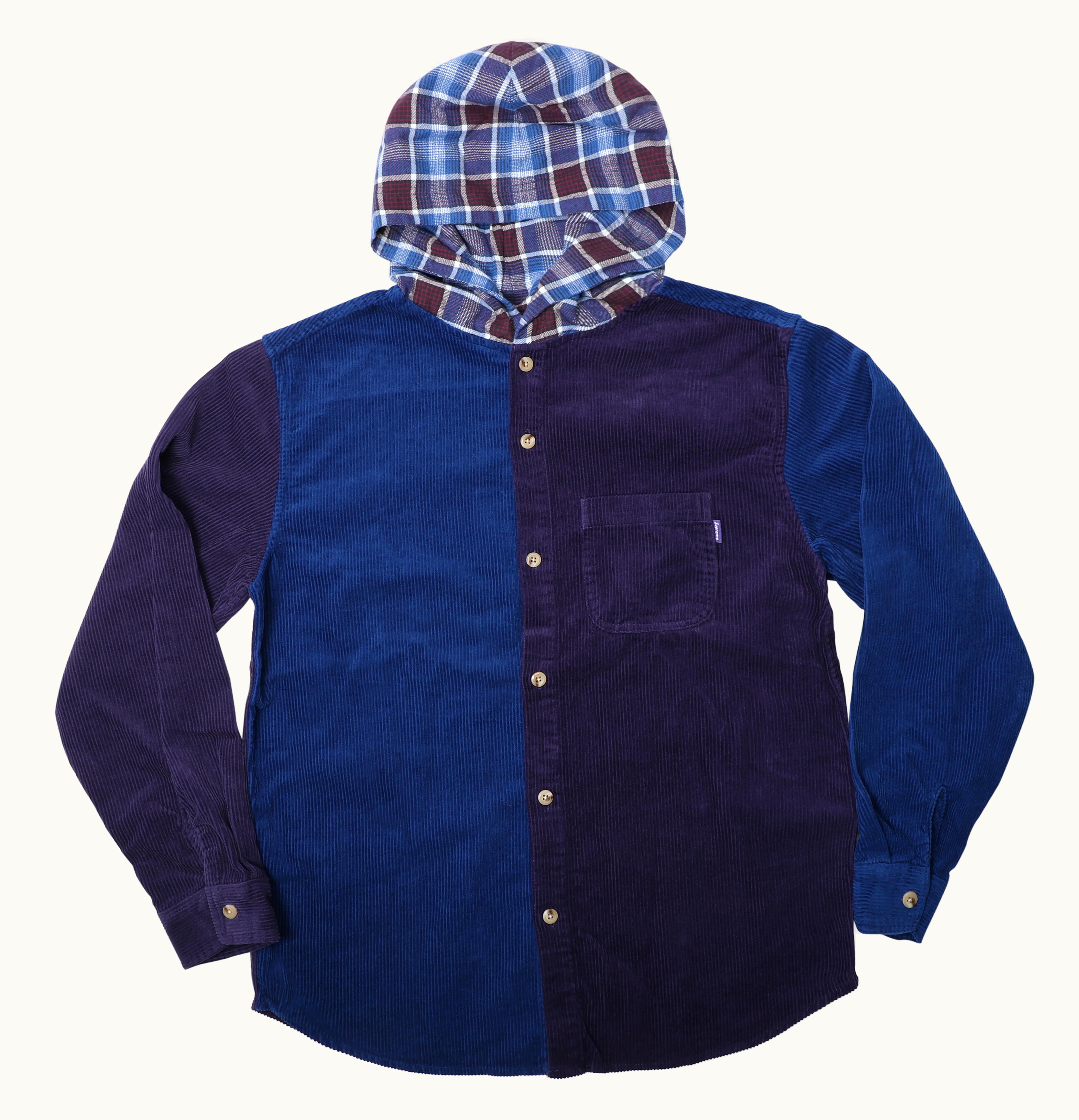 The Supreme Hooded Color Blocked Corduroy Hooded is a stylish and trendy jacket that is perfect for colder seasons. Made from premium quality corduroy fabric, the jacket features a color-blocked design in a bold and striking combination of black, light blue, and red. The jacket has a full zip-up closure, a roomy hood with drawstrings, and two pockets on the front. The jacket is lined with soft and cozy fleece, providing warmth and comfort on chilly days. The Supreme logo is embroidered in white on the chest, making it a statement piece for any streetwear outfit. This hoodie is a must-have item for any fashion forward individual who wants to make a statement while staying warm and comfortable.