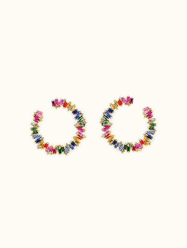 Suzanne Kalan Bold Rainbow Sapphire Sideways Hoops UZ0180350 | GLINT