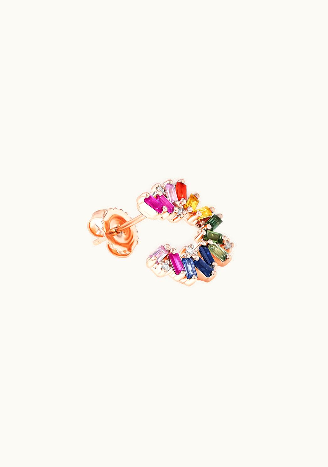 Suzanne Kalan Bold Rainbow Sapphire Sideways Mini Hoops UZ0180212 | GLINT