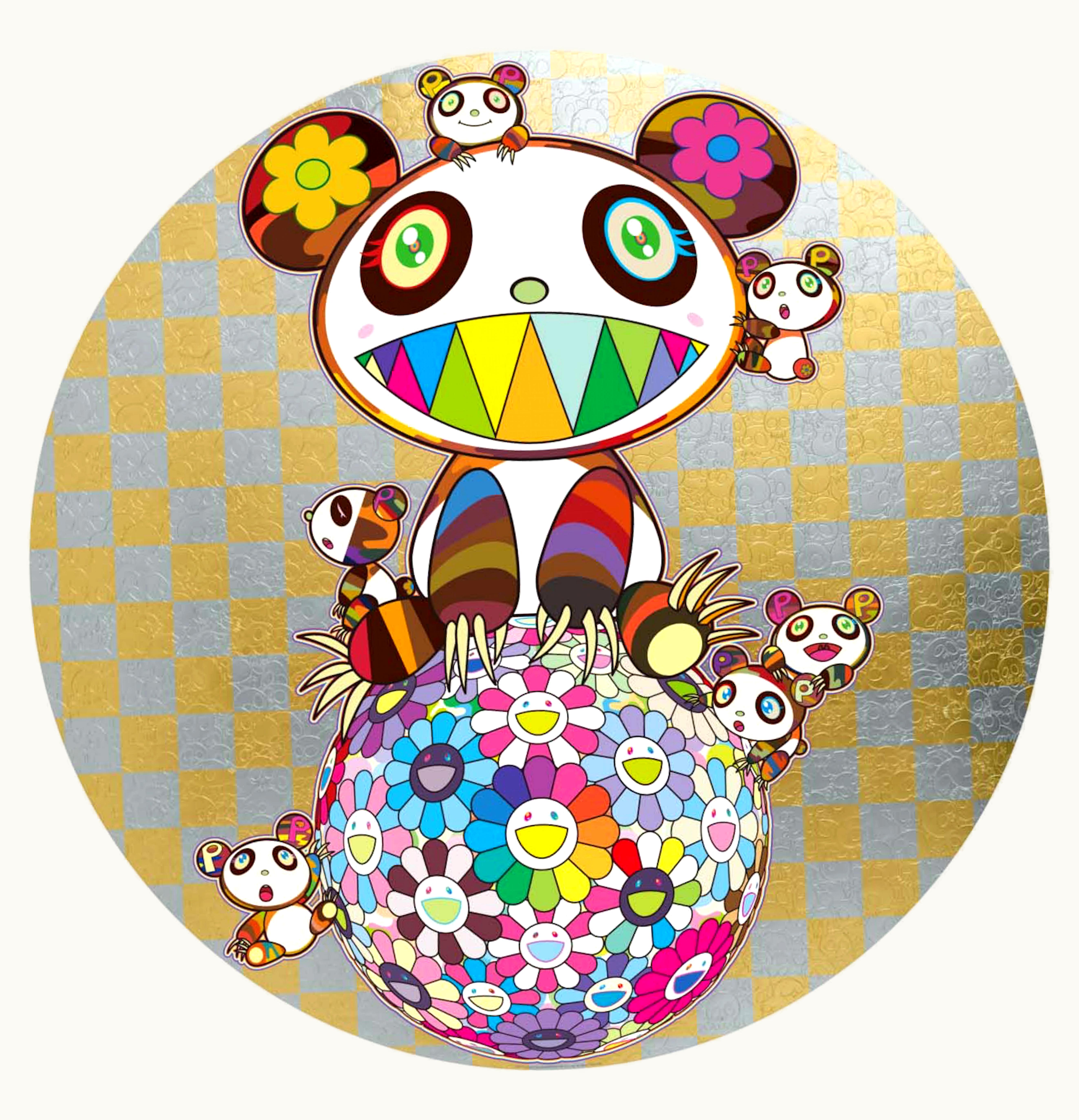 Takashi Murakami Panda and Panda Cubs and Flower Ball Print Gold Signed Edition of 300 | GLINT