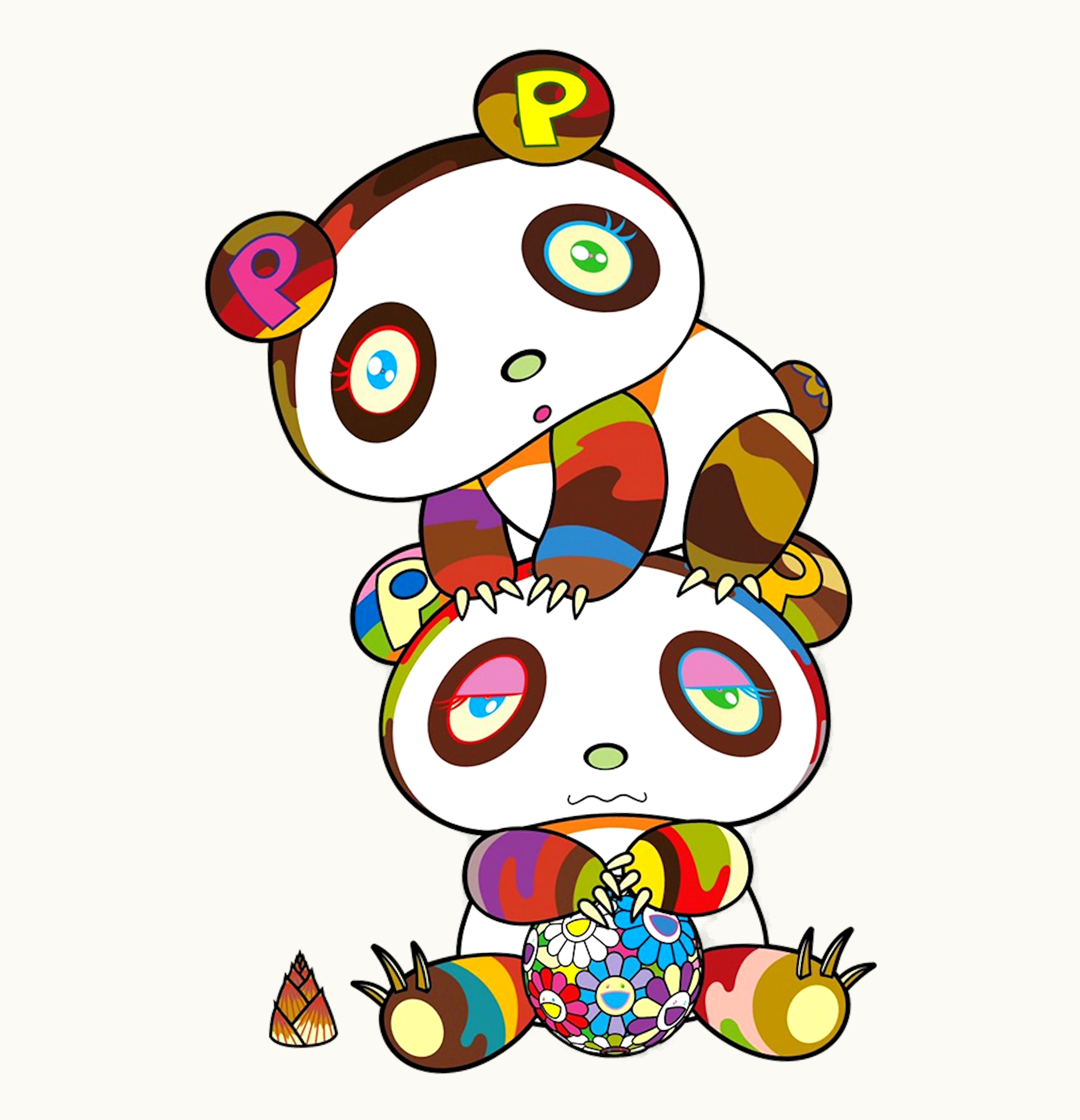 Takashi Murakami Two Panda Cubs In a Totem Pole Print Signed Edition of 100 | GLINT