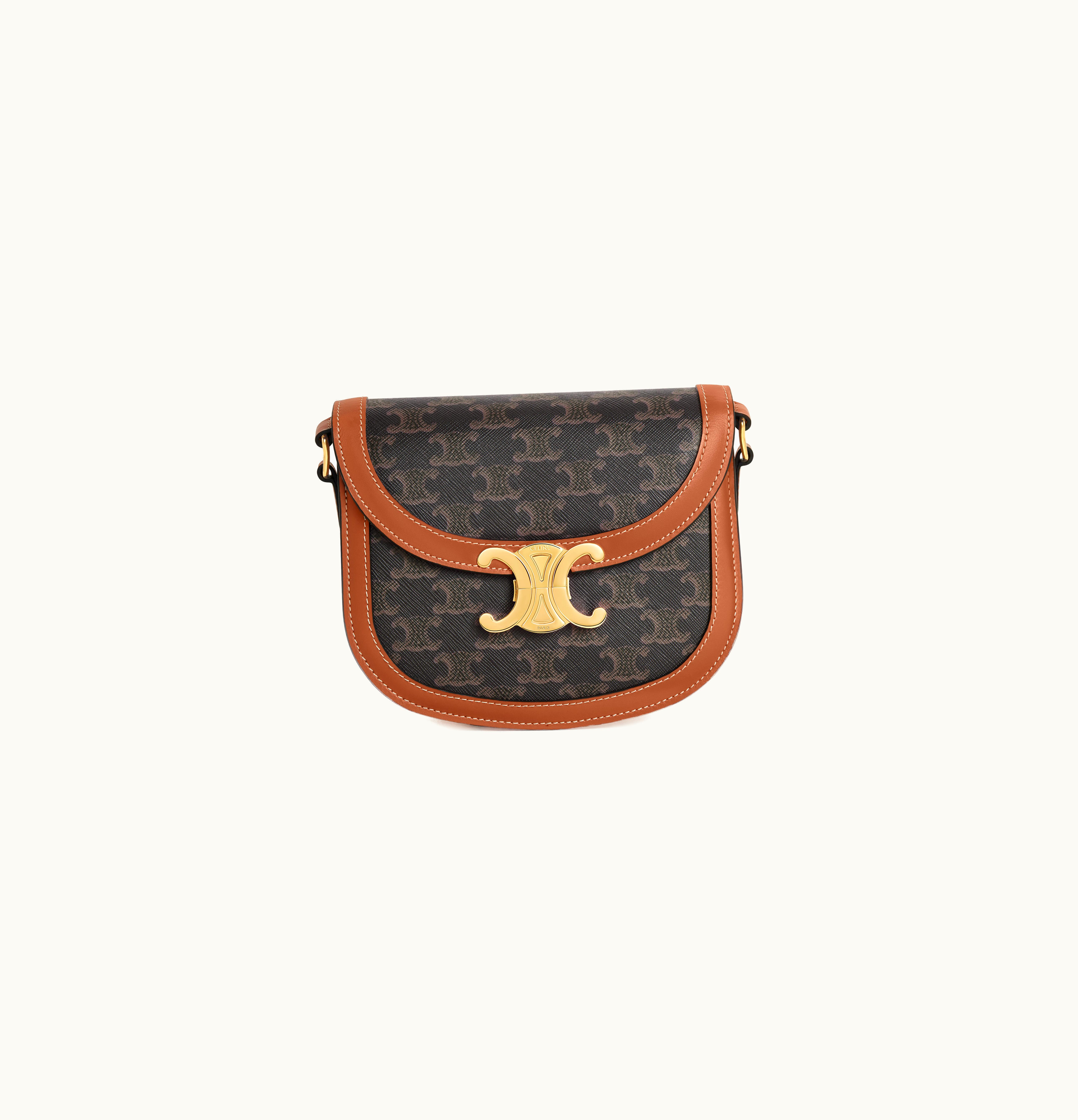 Celine Teen Besace Triomphe In Triomphe Canvas And Calfskin Tan | GLINT